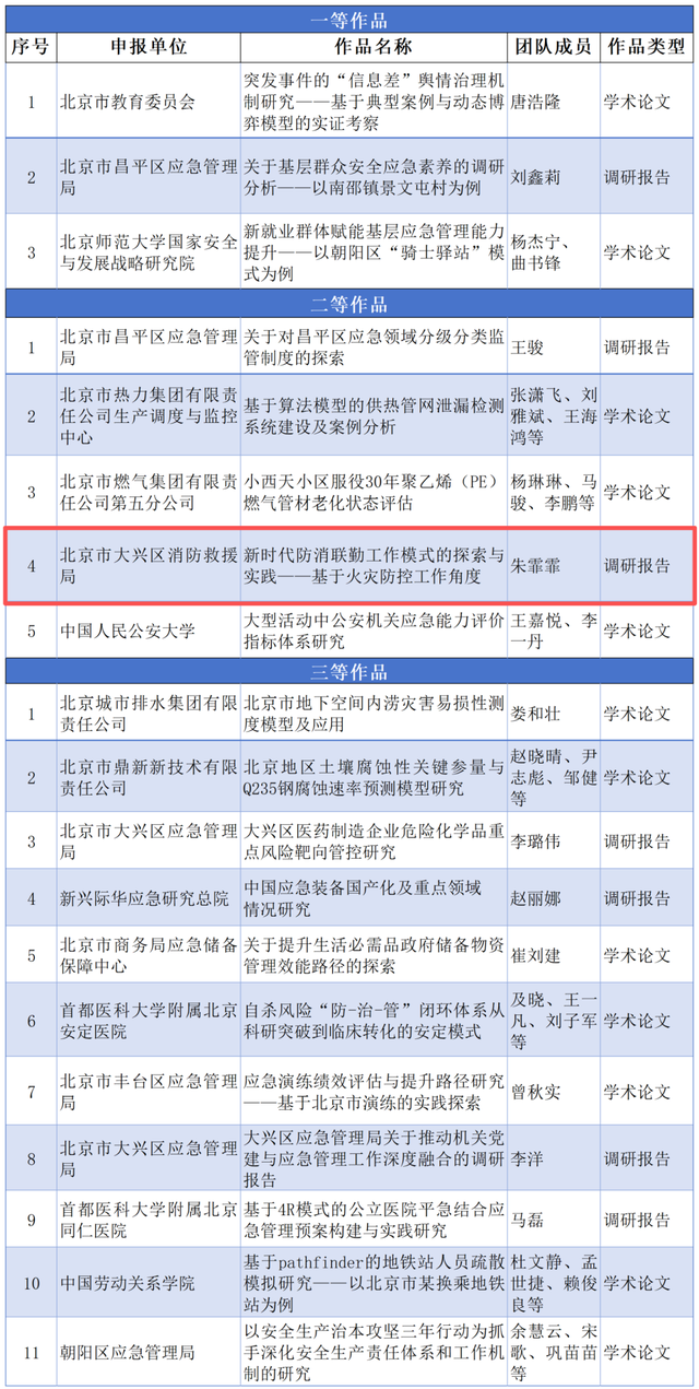《新时代防消联勤工作模式的探索与实践 —— 基于火灾防控工作角度》荣获理论调查研究类别二等作品;