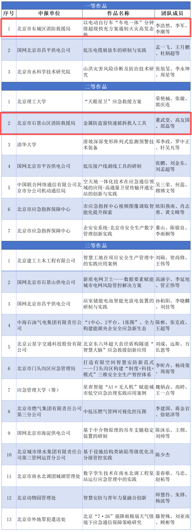 《以电动自行车 “车电一体” 分钟级超级快充方案遏制火灾高发态势》荣获实践应用案例类别一等作品,《金属防盗窗快速破拆救人工具》获该类别二等作品。