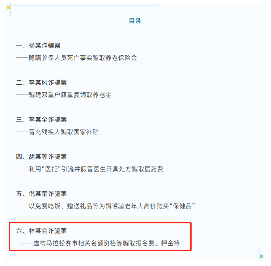 林某会诈骗案——虚构马拉松赛事相关名额资格等骗取报名费、押金