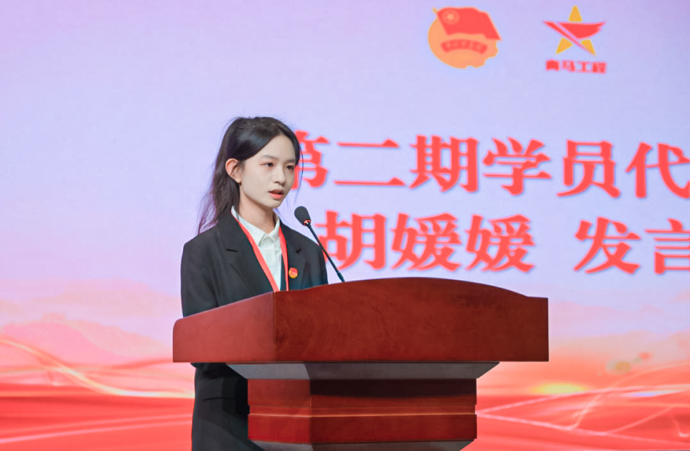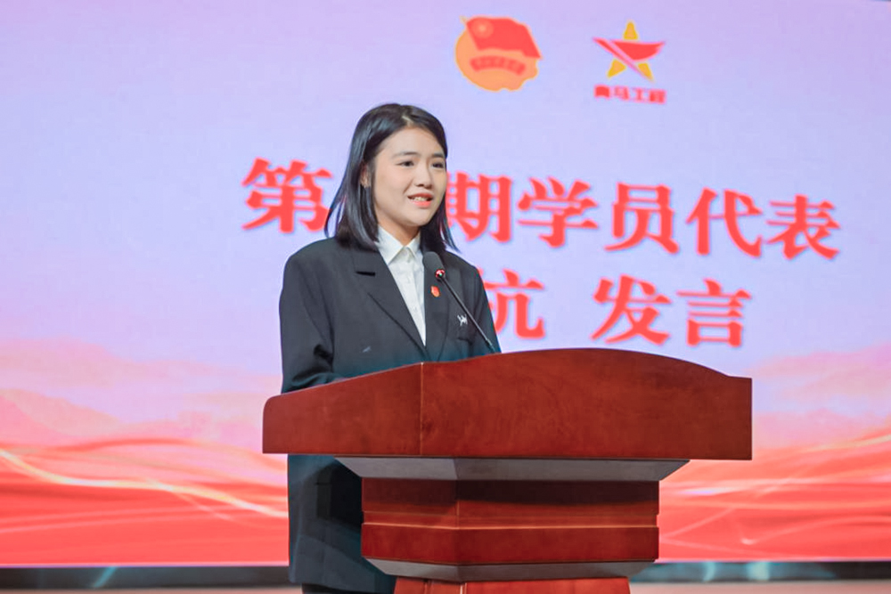 第二期学员代表胡媛媛表态:“以老学员为标杆,深学马克思主义理论,锤炼过硬本领,努力成长为‘政治坚定、本领过硬、勇于担当’的青年马克思主义者。”