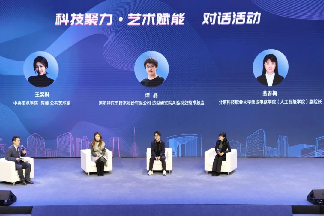 作为书香亦城科技阅读的核心品牌活动,“亦城新语”是经开区搭建产业、艺术、教育跨界对话的重要桥梁。本次活动聚焦“科技赋能艺术、文化添彩产业、人才适配时代”三大时代命题,特别邀请行业大咖展开深度分享。中央美术学院教师、公共艺术家王奕琳以“人工智能在公共艺术中的应用”为主题,分享了互动式人工智能艺术装置、人工智能公共艺术中的未来与挑战。她结合第五届“大都东南”科技艺术展的《生态图3号》《未来植物图考》等展出作品,深入阐述AI设计如何打破艺术创作的边界与桎梏,让艺术从殿堂走向大众生活。阿尔特汽车技术股份有限公司造型研究院AI&视效技术总监谭晶发表题为《“释放灵感 激活创意”太乙TAI重塑汽车设计工作流程》的演讲。他从百年之间汽车的时代变迁为切入点,聚焦阿尔特“AI+汽车”战略,介绍了首款聚焦于汽车设计的AI绘图应用。北京科技职业大学集成电路学院(人工智能学院)副院长裴春梅围绕“政产研学用”融合模式创新,系统提出“企业需求导向的AI人才培养路径”,提出实践教学与产业项目的深度绑定,为行业人才供给提供解决方案。