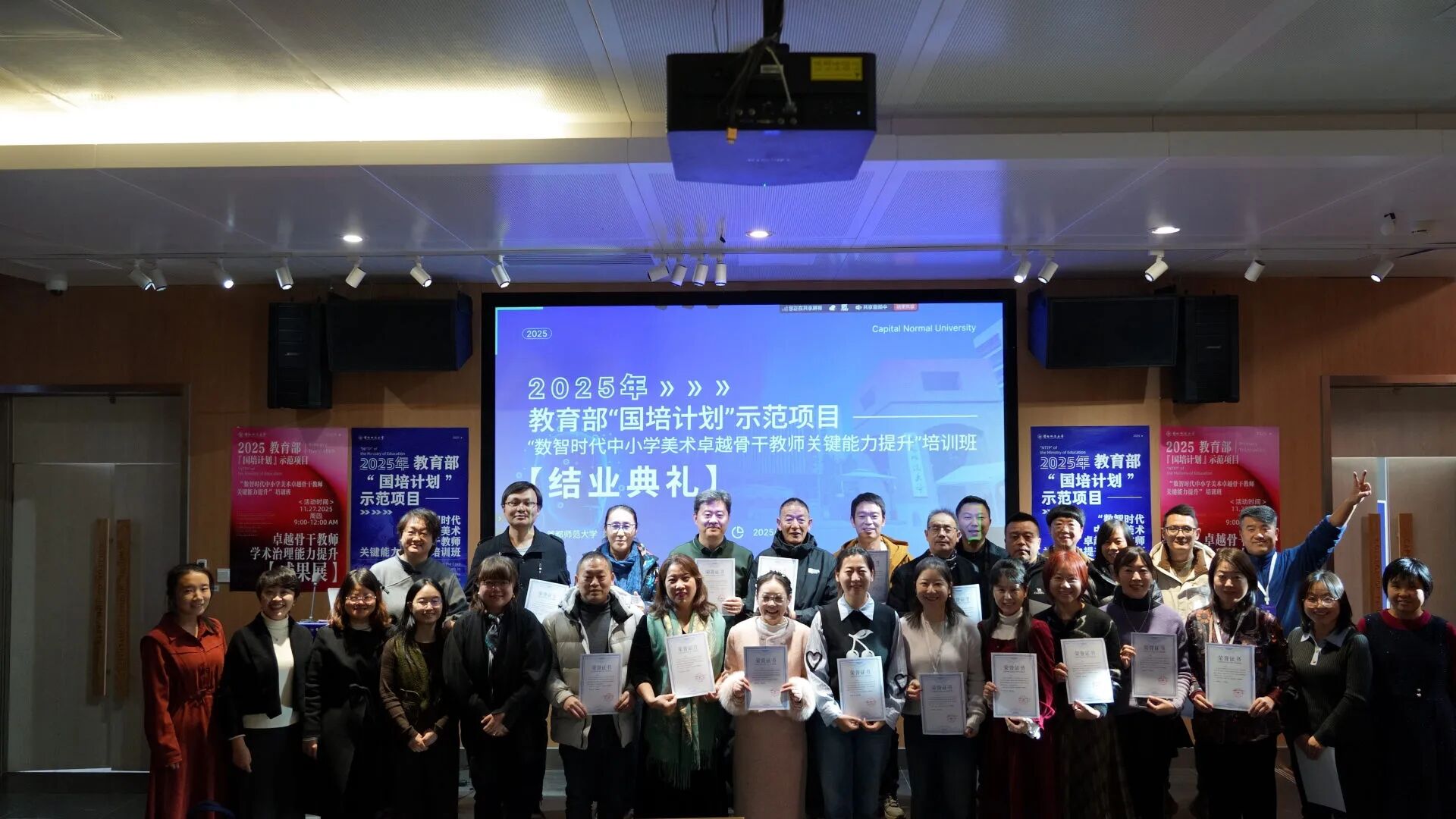 近日,2025年教育部“国培计划”示范项目——“数智时代中小学美术卓越骨干教师关键能力提升”培训班在首都师范大学美术学院结业。作为本年度全国唯一的美术类国培示范项目,本次培训聚焦新时期中小学美术教育改革发展需求,汇聚了来自全国各地的50名中小学美术骨干教师,围绕“数智融合、美育浸润”开展为期十天的研修。
