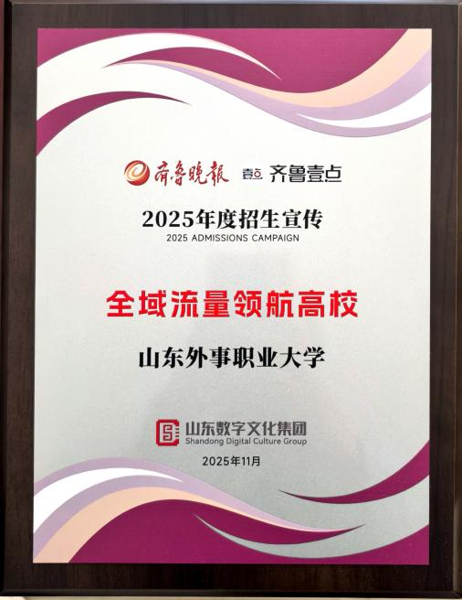 为积极响应新时代对高质量人才培养要求,搭建高校与中学协同育人桥梁,11月26日至29日,2025全国高校、中学升学交流研讨会在浙江丽水学院召开。山东外事职业大学作为职业本科教育领域代表受邀参会,凭借招生宣传工作中的创新实践与突出成效,喜获“2025年度招生宣传全域流量领航高校”荣誉称号,充分彰显了学校在职业本科招生宣传领域的品牌影响力。