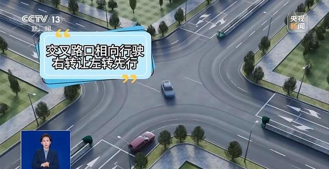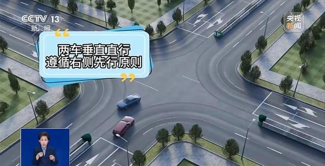 比方说,在驾车通过没有交通信号灯控制、没有交通标志、标线控制的交叉路口时,两车垂直直行,遵循右侧先行原则,前进方向的右侧车辆拥有优先路权,需要让右侧车辆优先行驶。您看视频中的红色车辆就要让蓝色车辆先行。
