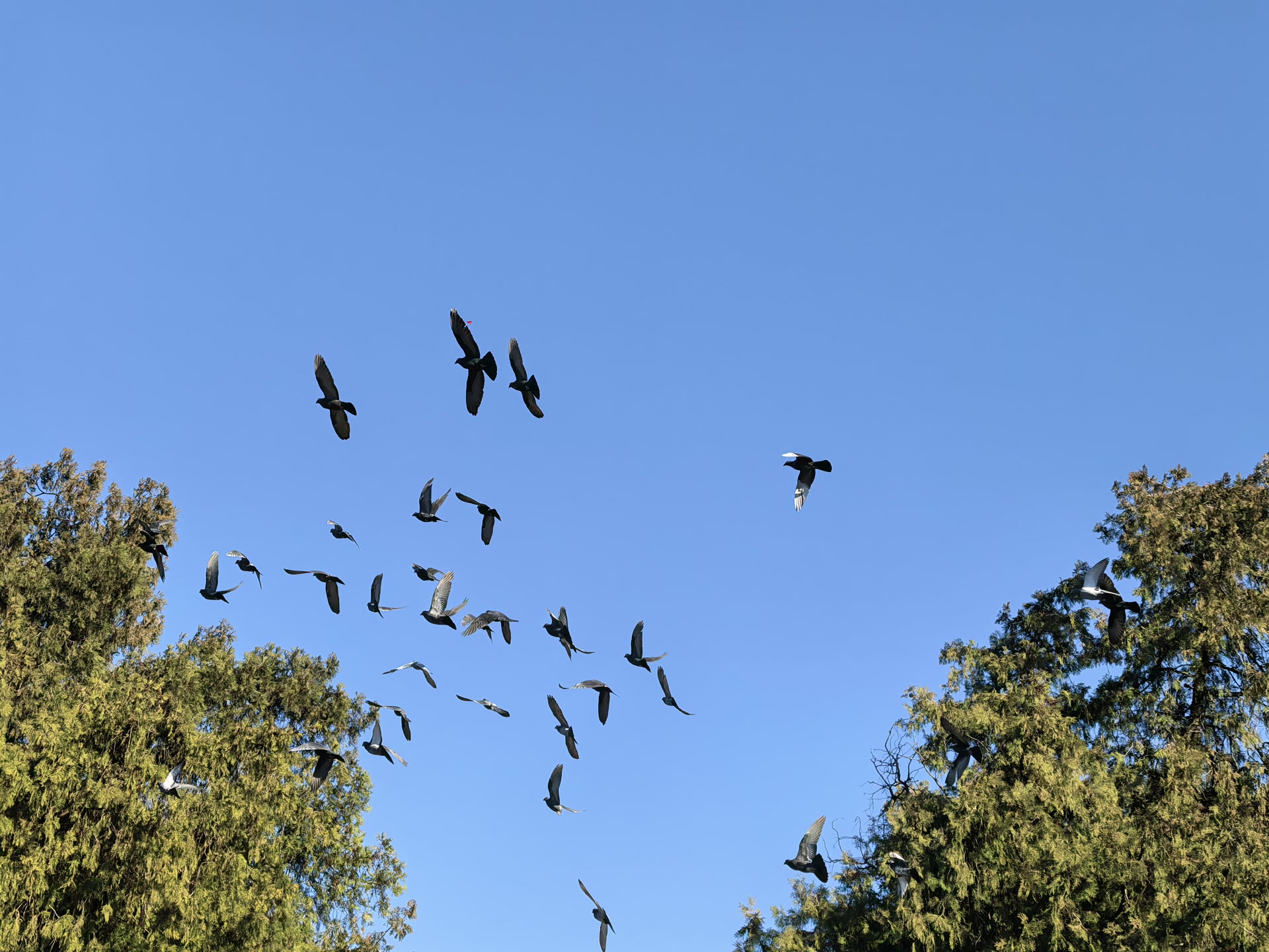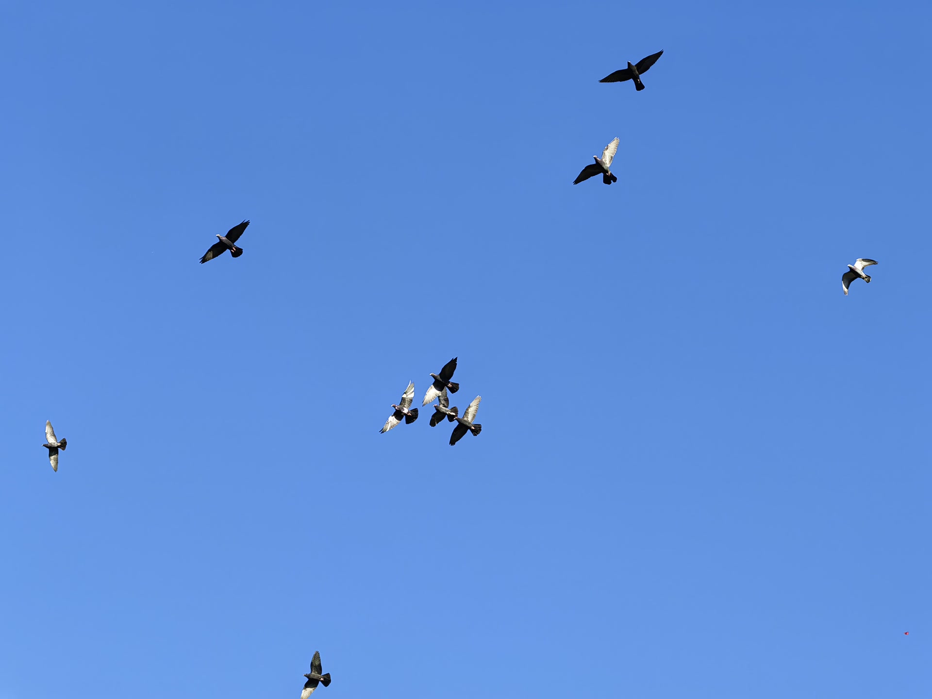 我来得巧。恰是午后的光景,成群的鸽子,不知从哪一片屋檐下、或哪一丛枯草间,忽然地腾起,“呼啦啦”一片,像谁在半空里倏地抖开了一匹灰白的缎子。它们盘旋着,翅膀在逆光里闪动着金属似的、亮晶晶的边儿,鸽哨的声音便从那天的高处,悠悠地、绵绵地落下来。那声音不是尖锐的,是圆润的,带着嗡嗡的回响,仿佛这声音本身也有形状,像一个个透明的、胀鼓鼓的肥皂泡,在清冷的空气里缓缓地浮沉,一直要荡到人的心里去。它们时而聚拢,时而散开,在地上投下流动的、迅疾的影,给这凝定的冬日图景,添上了几笔活泼的生气。