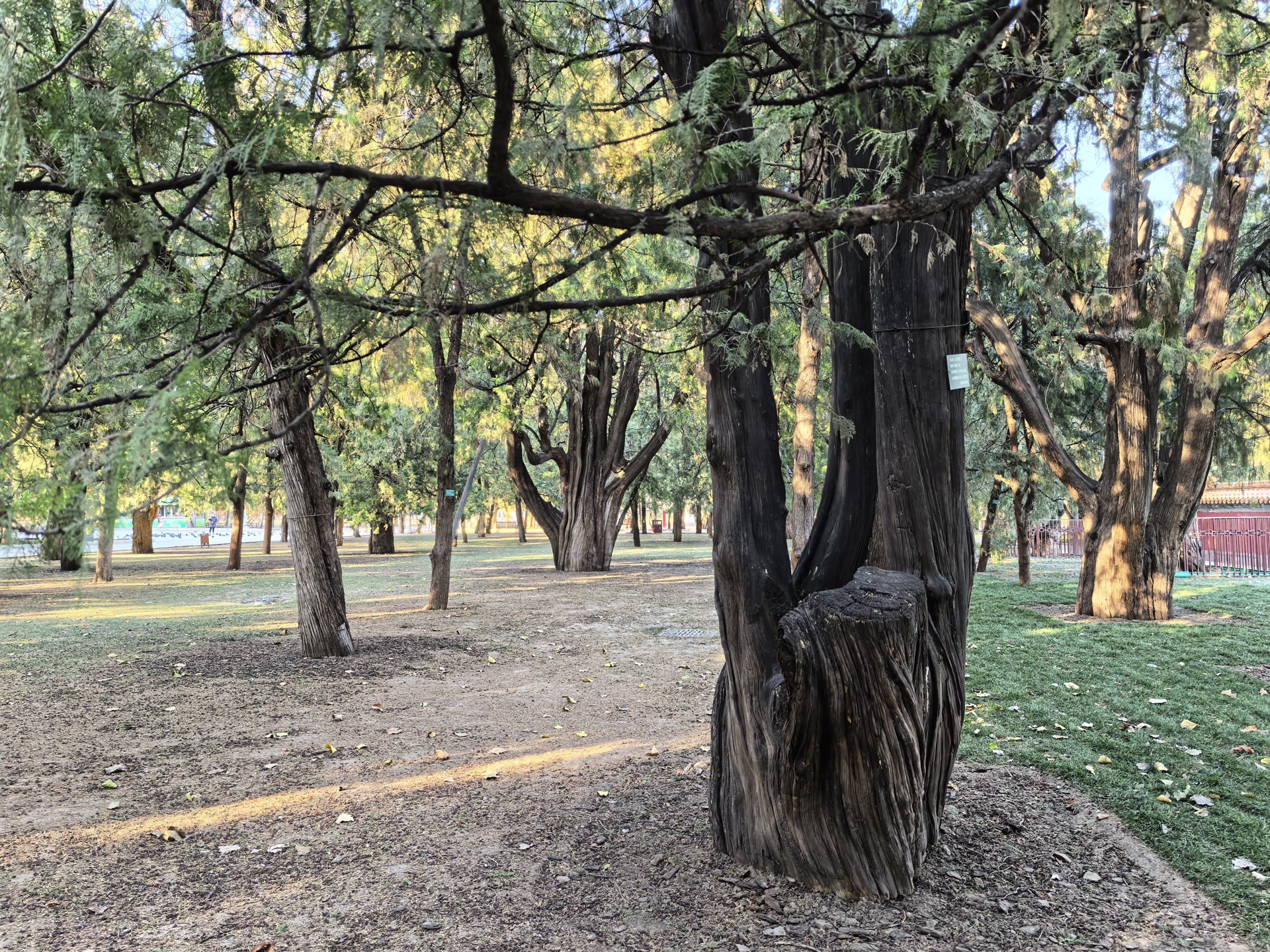 我没有去那有名的方泽坛。远远望见那汉白玉的栏楯和坛壝,在无遮无拦的阳光下,白得有些耀眼,像一块巨大的、冰冷的玉。门是闭着的,许是在修缮,许是本就如此。隔着栅栏,能看见里面空无一物,只有那巨大而平整的坛面,向着青天敞开着。那是一种慑人的空旷,仿佛天地间所有的声音与颜色,到了那里,都要被吸进去,化为一缕无言的静穆。这祭地的神坛,与天坛那祈年殿的崇高华美相比,似乎更显得沉雄而朴厚。帝王们曾在这里,向着厚德载物的大地,献上玉帛与牲醴,祈求风调雨顺,五谷丰登。那该是何等庄严而又虚幻的仪式!如今,帝制与神权俱往矣,只留下这空荡荡的坛,和坛边几株阅尽沧桑的老柏,默默相对。热闹是它们的,我什么也没有,只遥遥地看上一眼,便觉得那空旷也压到了自己的心上,有些沉甸甸的,于是便折向园子的深处去了。