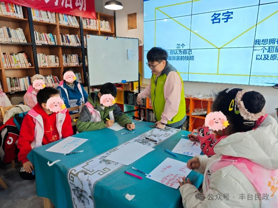 为深入贯彻丰台区儿童福利保障与青少年成长发展工作要求,扎实推进困境儿童关爱服务工作,近日,丰台区民政局在晓阅时光书香驿站成功举办“锐气明日规划局——青少年口才赋能与未来规划小组活动”。活动以“口才赋能”为载体、“未来规划”为导向,通过沉浸式、互动式的小组形式,帮助困境儿童提升表达能力、树立成长自信、描绘人生蓝图,构建家庭、社区、社会协同支持的全方位成长网络。