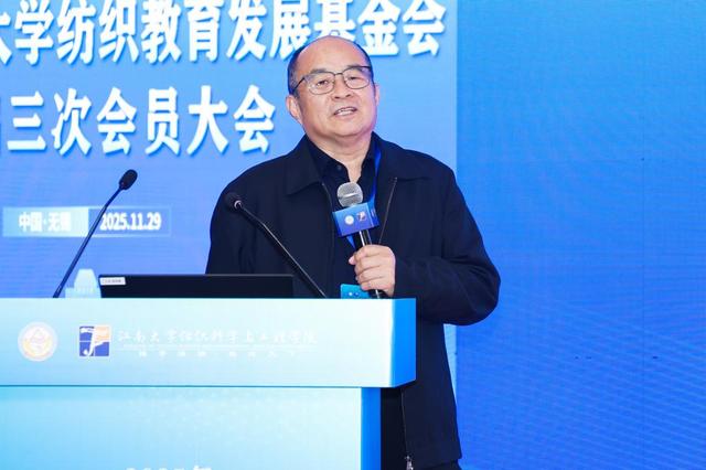 付少海代表学院作年度发展报告。他结合学院“十五五”发展规划,向与会会员介绍了未来发展思路。他指出,要结合国家发展战略,凝聚学科发展方向,以“纺织+”理念深耕科学研究领域,持续强化特色优势,共同推进建成兼具研究型、国际有影响力、特色鲜明的学院。