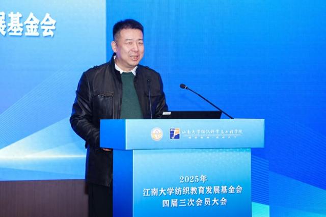 高卫东作基金会年度工作报告,他从基金会概况、本年度工作、下一步工作计划向与会会员汇报。展望未来,他表示基金会将继续深化拓宽资源对接渠道,深化产学研协作机制,联合八方校友赋能学校教育事业发展,携手构建校友与母校命运共同体,共创江南纺织教育事业的美好未来。