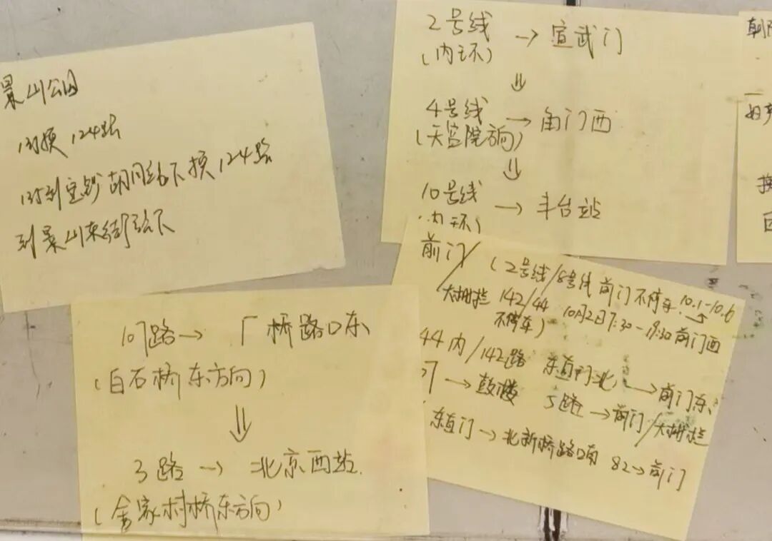 在东直门指路点,温暖体现在每一个细节中:青年志愿者看到行动不便的老人,会拿出椅子让老人坐下,然后蹲下身子询问需求;志愿者们使用暖心便利贴,为路人详细写下路线;见到包裹破损的路人,主动拿出新袋子帮助重新打包……