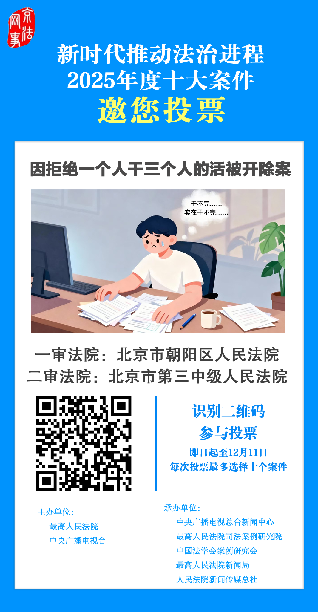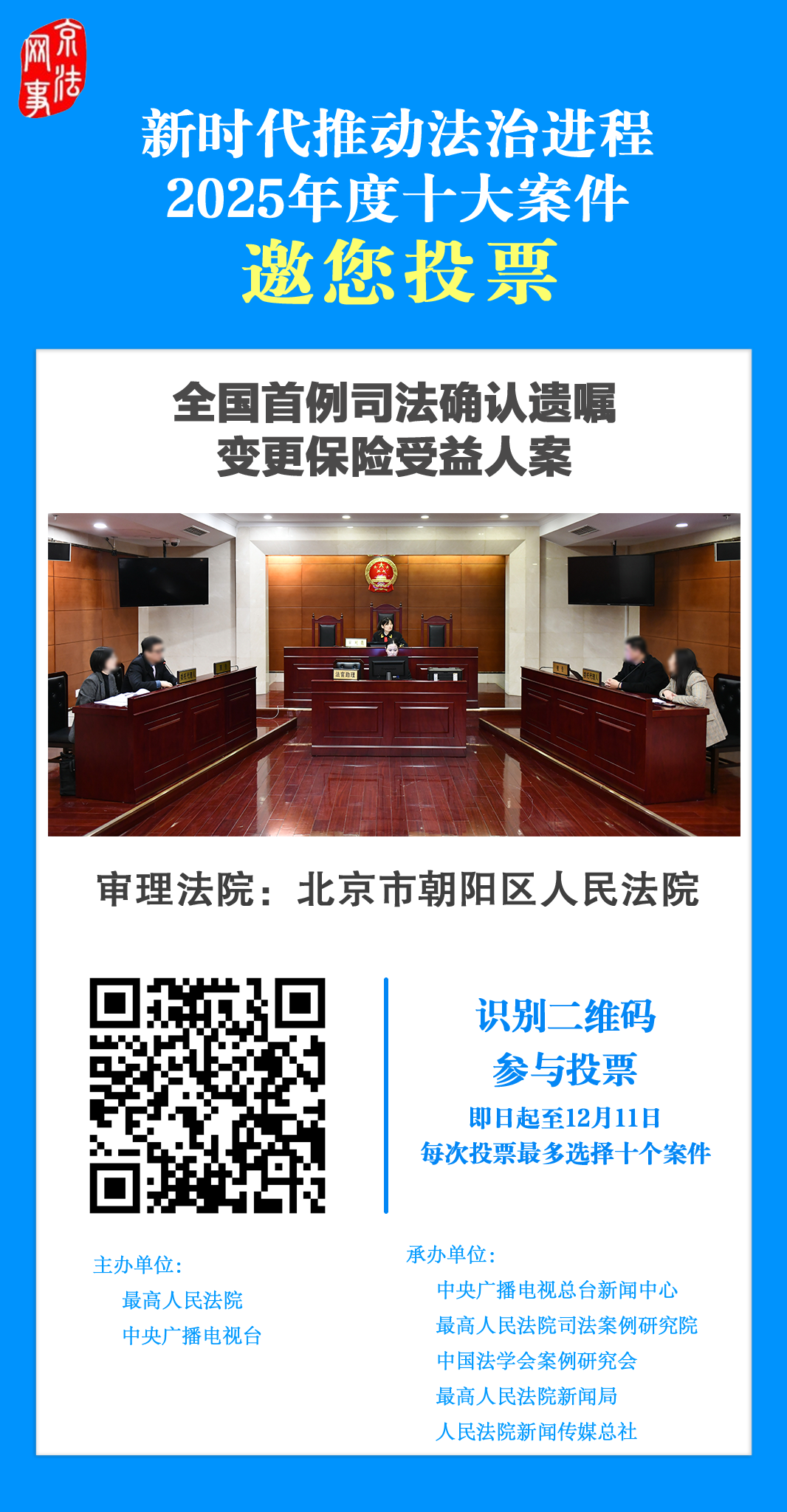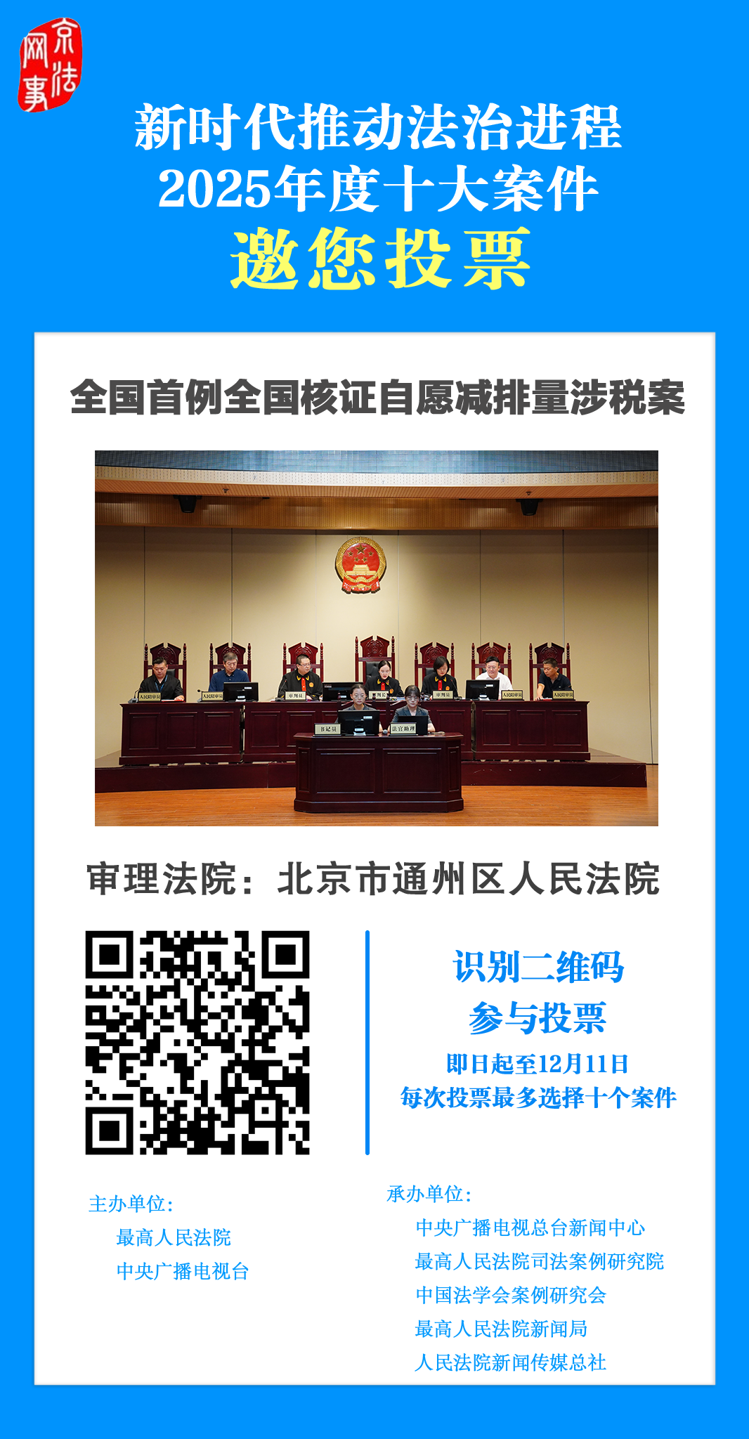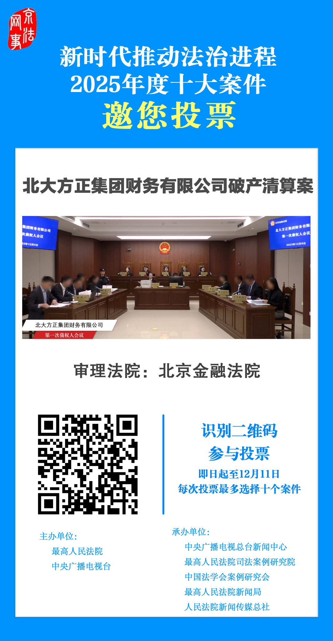 投票通道开启!北京法院八案例入围“新时代推动法治进程2025年度十大案件”评选活动