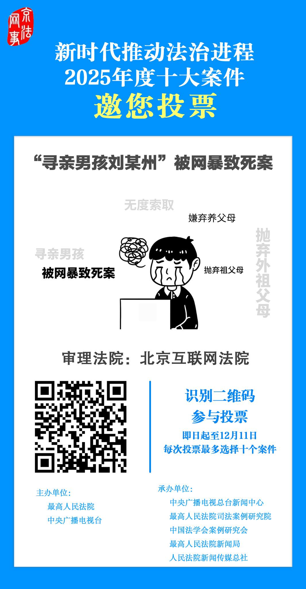 由最高人民法院与中央广播电视总台共同主办的“新时代推动法治进程2025年度十大案件”宣传活动网络投票于12月4日正式启动。50个广受社会关注的热点案件正在接受社会公众投票。