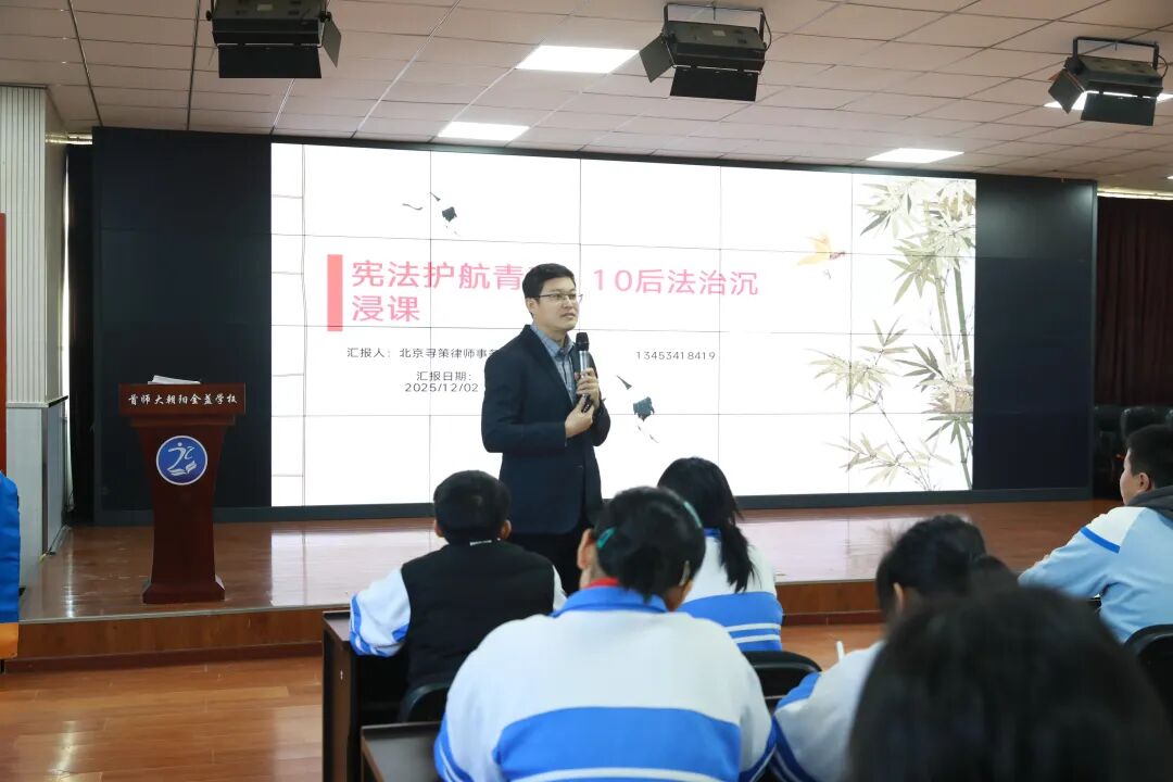近日,金盏地区司法所联合平安建设办公室、北京寻策律师事务所,走进首都师范大学朝阳金盏学校,开展 “宪法护青春 禁毒再传承” 主题普法讲座。