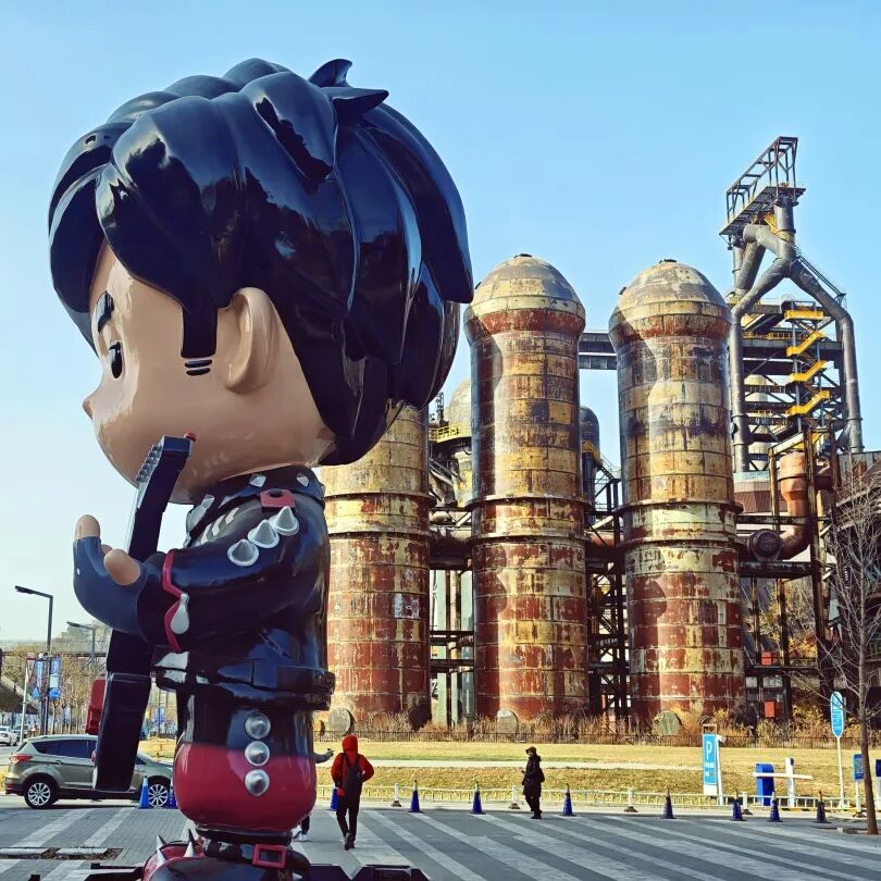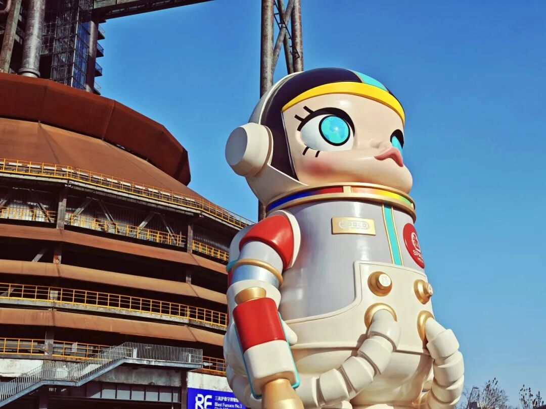 在附近闲逛,还能偶遇特别的潮流艺术装置。高达数米的Molly雕塑矗立在开阔空间,标志性的冷静表情与周围的工业背景形成奇妙反差。或是去看看三高炉内的沉浸式数字艺术空间RE睿·三高炉数字博物馆。光影技术将钢铁巨炉的历史与未来娓娓道来,感受一场震撼的视听盛宴。