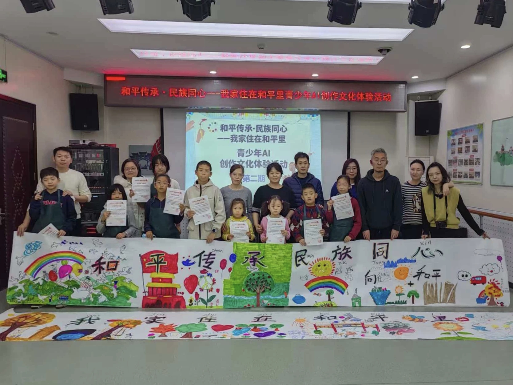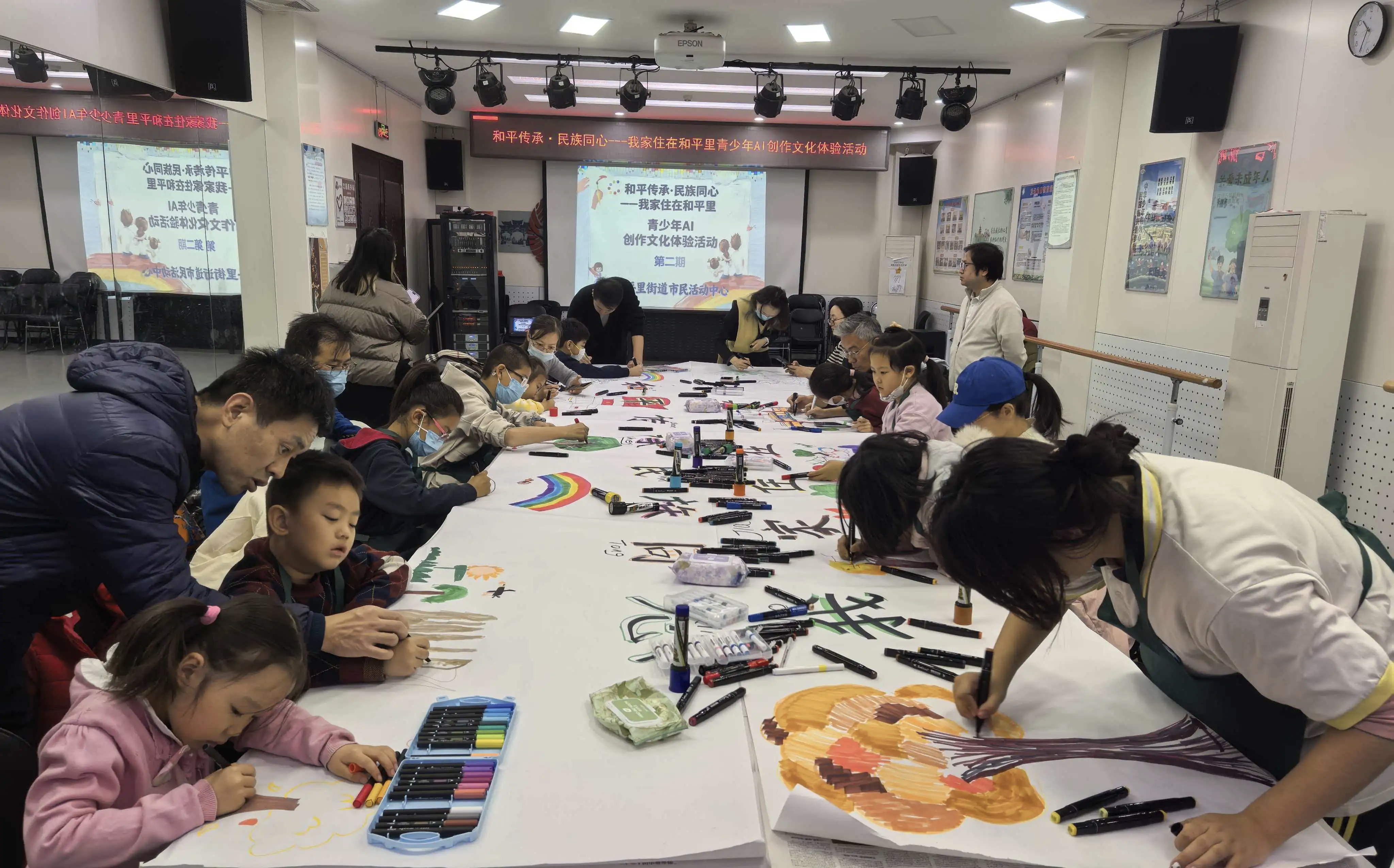 在首期活动得到辖区青少年及家长们的热烈反响与广泛好评基础上,“和平传承・民族同心——我家住在和平里”青少年AI创作文化体验活动于近日在街道市民活动中心温馨开启第二期线下集体长卷创作。