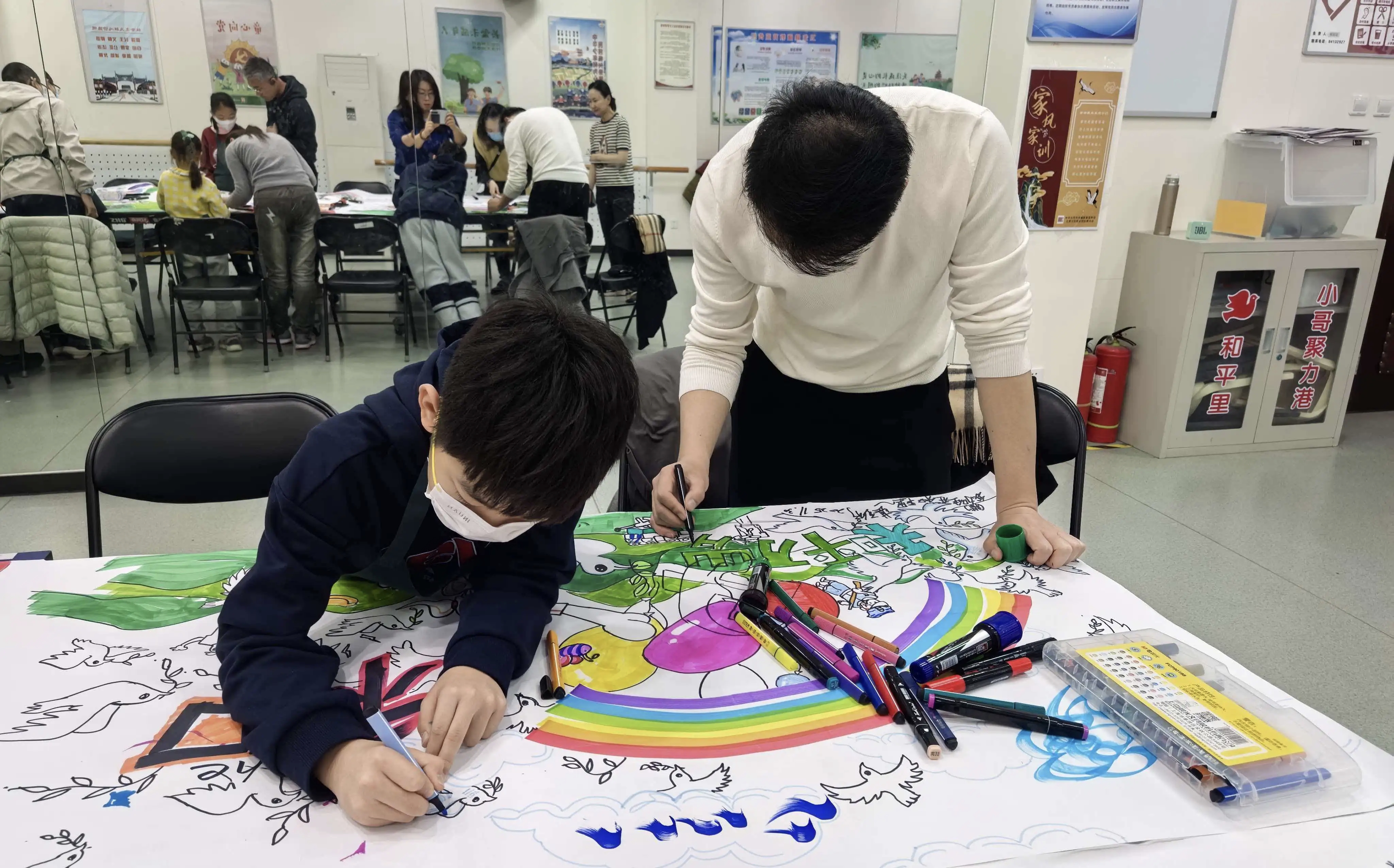 活动现场,气氛温馨而热烈。孩子们兴致勃勃,手持彩绘笔,在长长的画卷旁或蹲或坐,全神贯注地勾勒线条、填充色彩;家长们则化身得力助手,协助准备画材、交流配色,与孩子一同探讨如何将数字灵感完美呈现于画卷之上。