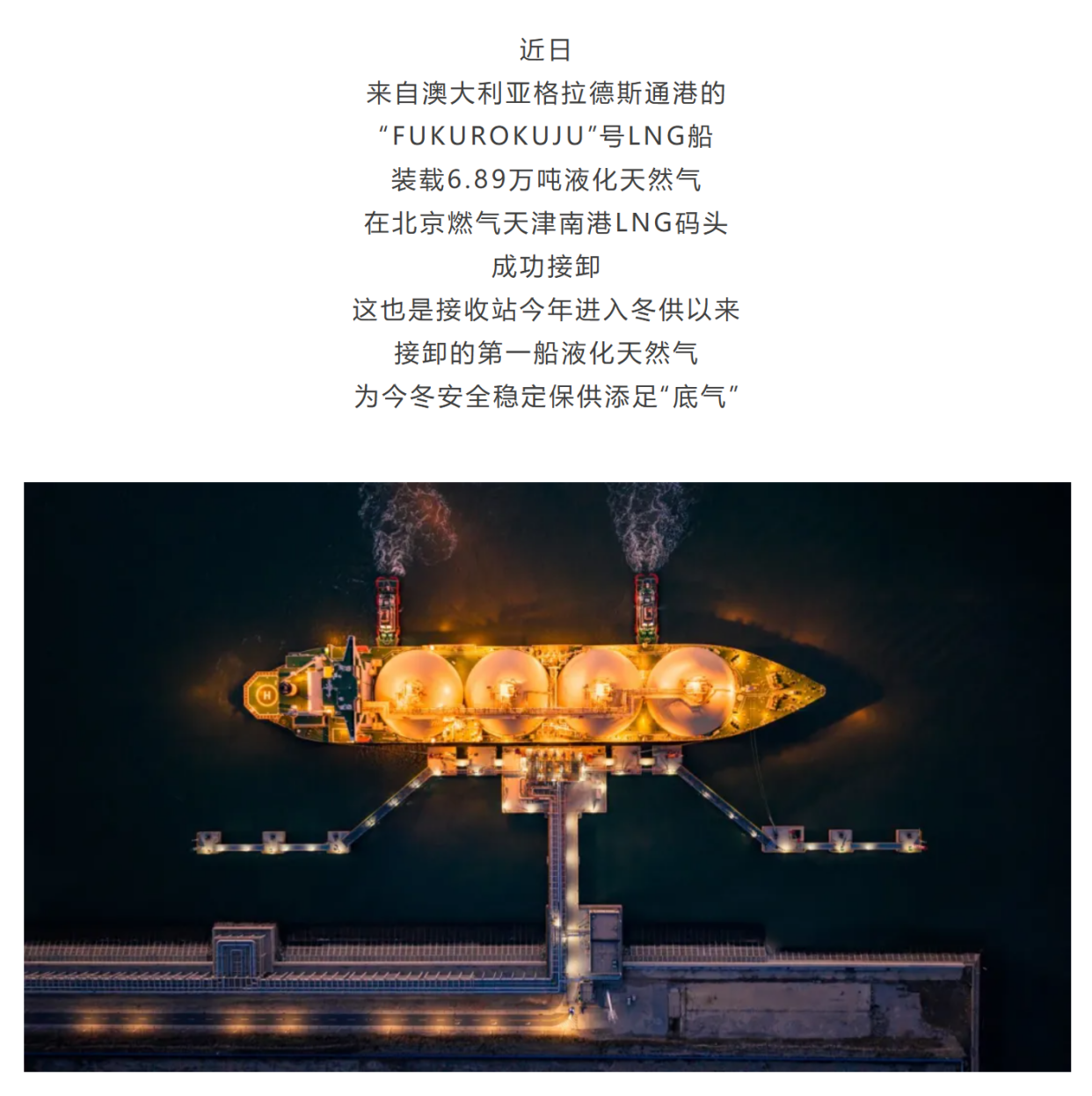 6.89万吨液化天然气成功接卸!冬季保供首船到港→