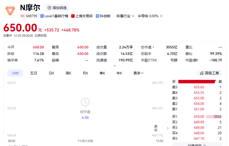 开盘股价高开468.78%,报650元/股,总市值为3055亿元。市场以热烈的资金反响,表达了对这家国产高端全功能GPU龙头未来成长潜力的高度认可与期待。这不仅是一次成功的资本化旅程,更是中国在高性能计算核心领域自主攻坚的一座里程碑,标志着国产算力“芯”时代正式扬帆起航。