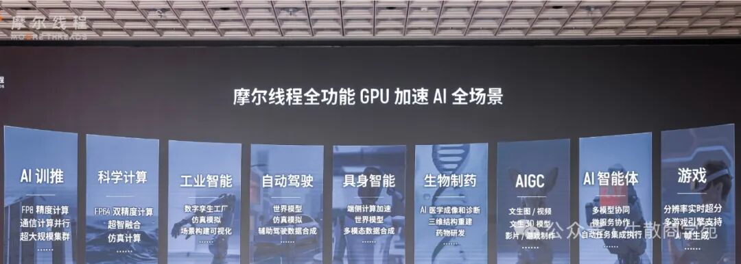 那么,这些成果应用场景如何?张建中在上市致辞中表示:“我们已成功推出四代GPU架构,完成五颗芯片的量产,形成从芯片到集群、覆盖云边端的全栈产品布局。我们的解决方案已应用于政务、企业、数据中心及消费终端等多个领域,服务于大模型、数字孪生、物理AI等前沿场景,为千行百业的智能化转型注入算力动能。”
