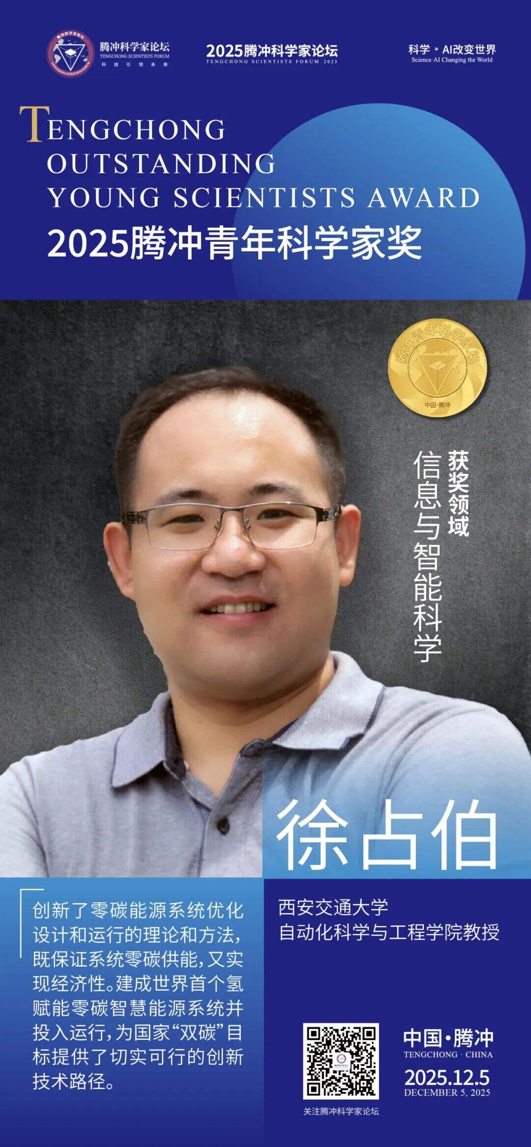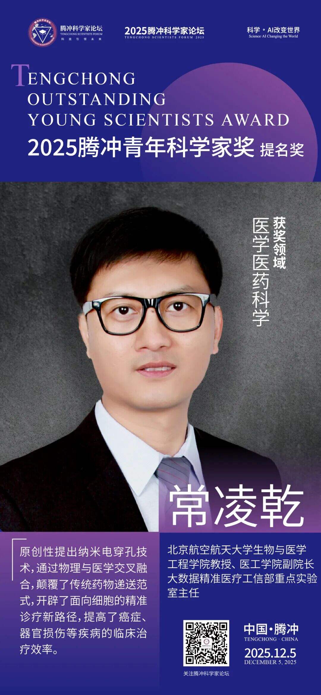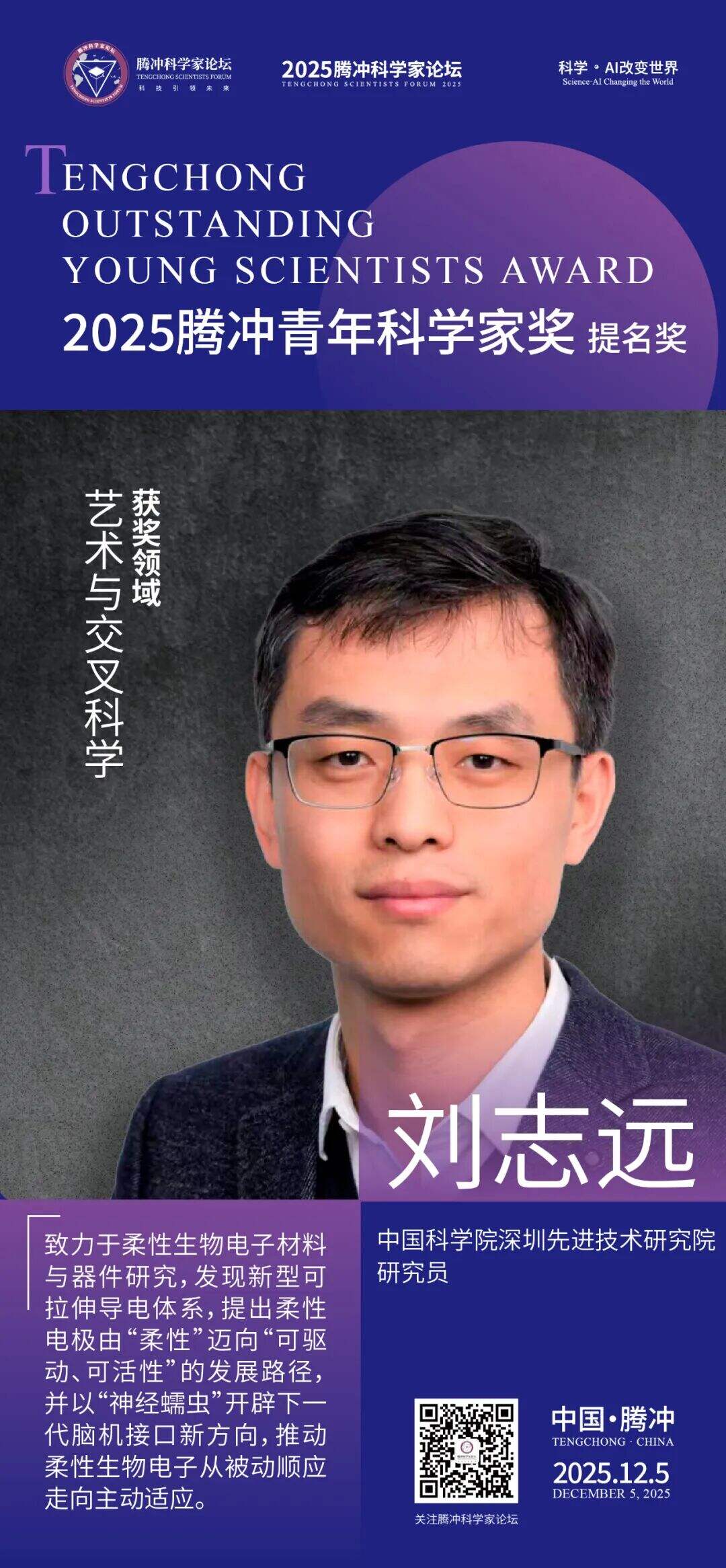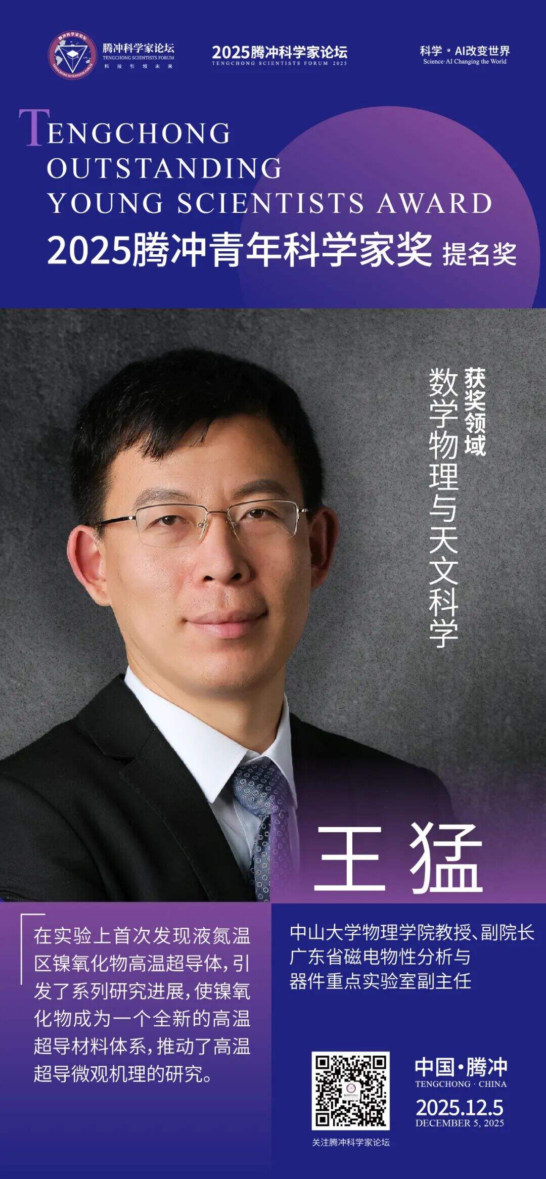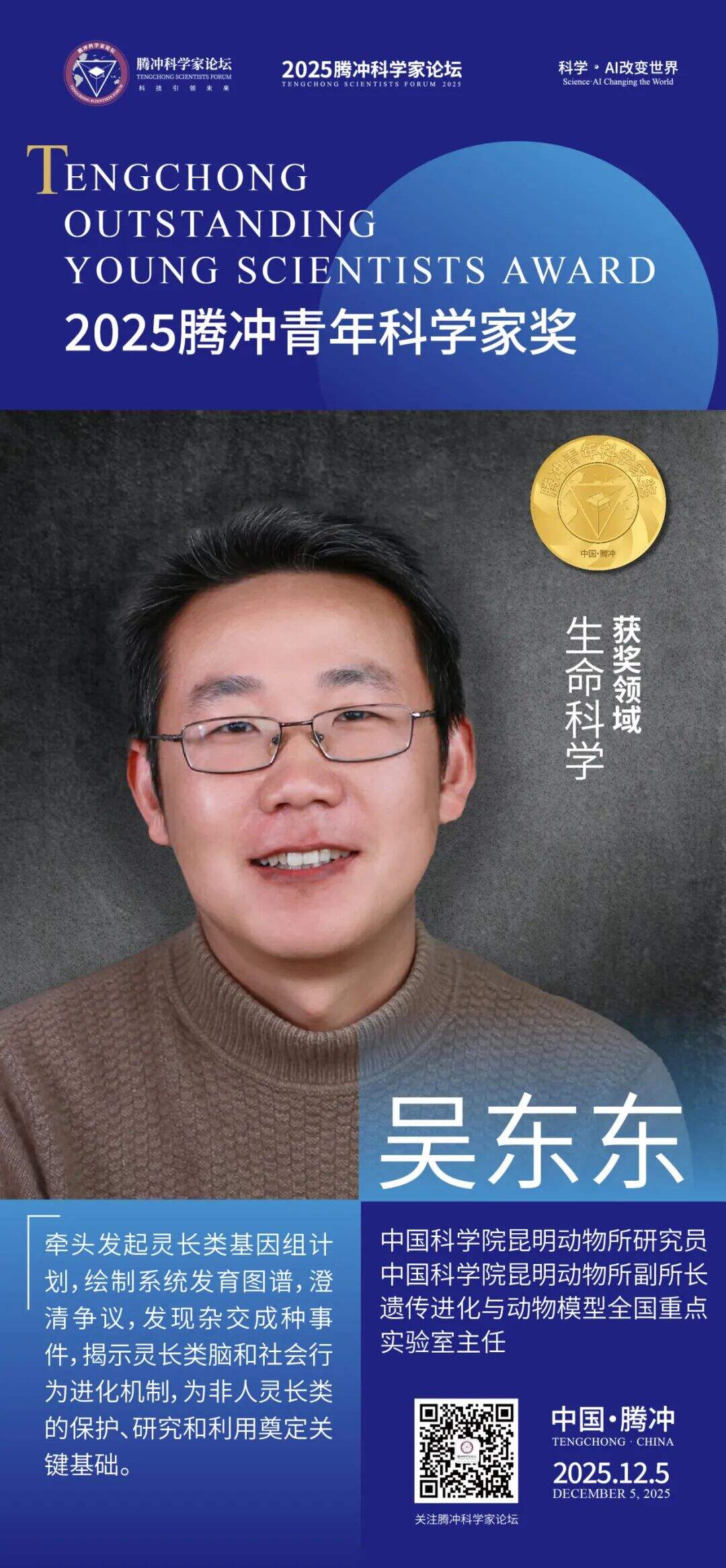 12月5日,2025腾冲青年科学家论坛在保山市腾冲市举行。论坛颁奖典礼上正式揭晓了首届“腾冲青年科学家奖”获奖者9名及提名奖获奖者9名。据了解,“腾冲青年科学家奖”主要面向40周岁以下青年科技工作者,重点表彰在基础研究、技术创新及科学普及等领域取得突出科研成果、展现卓越创新潜力的青年科学家。