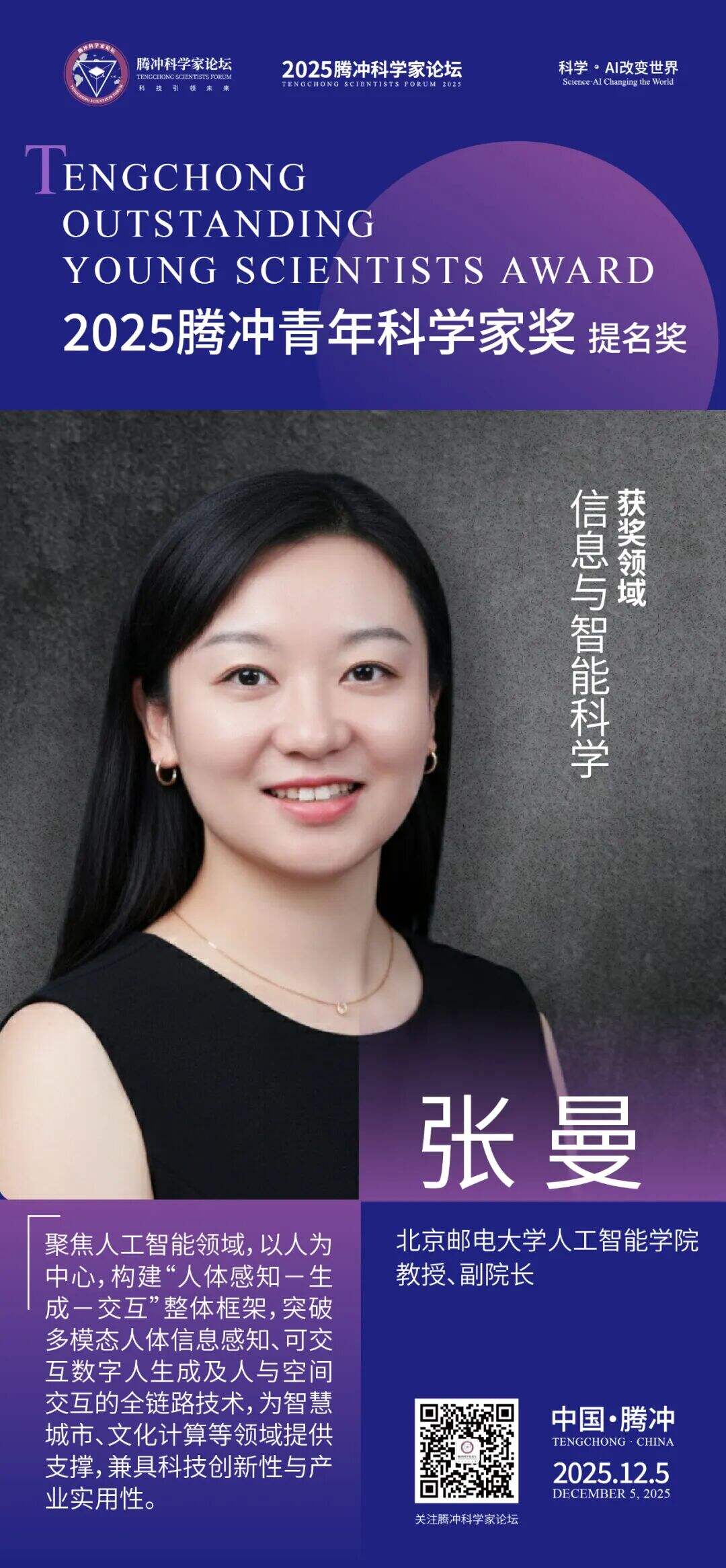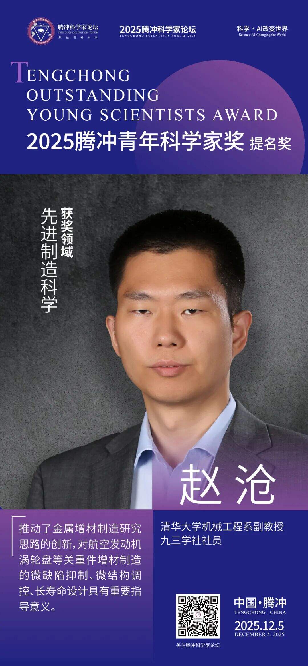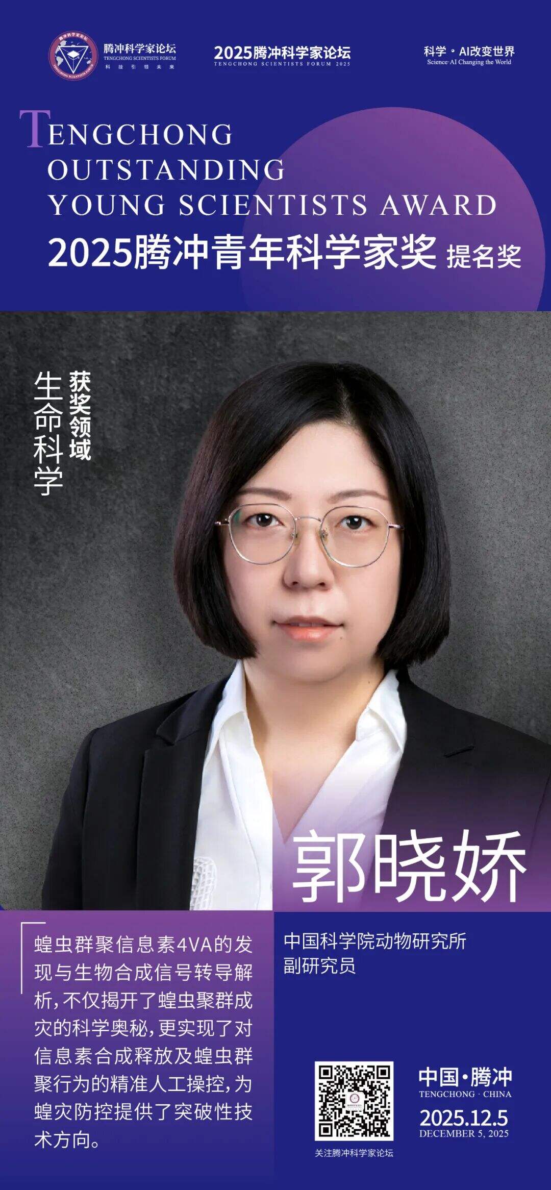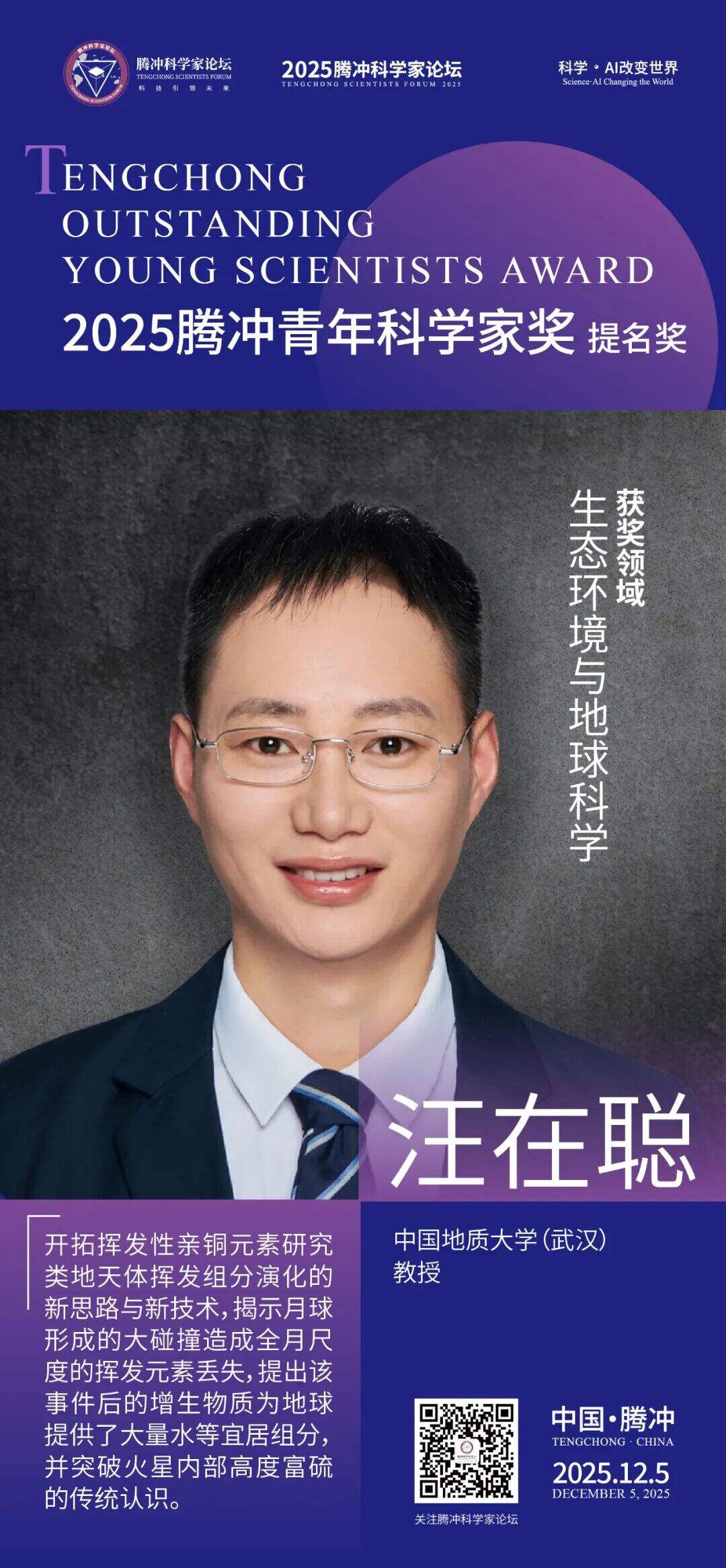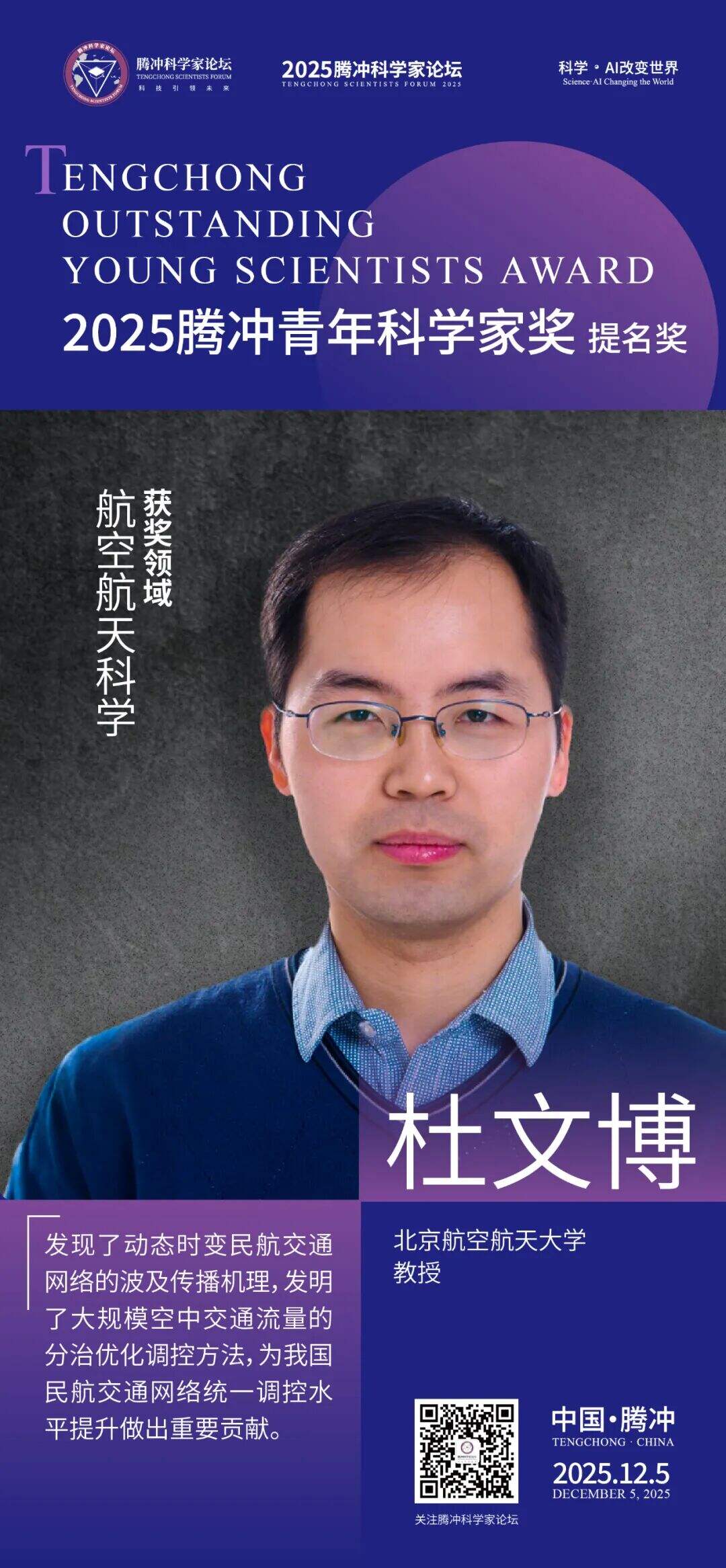 12月5日,2025腾冲青年科学家论坛在保山市腾冲市举行。论坛颁奖典礼上正式揭晓了首届“腾冲青年科学家奖”获奖者9名及提名奖获奖者9名。据了解,“腾冲青年科学家奖”主要面向40周岁以下青年科技工作者,重点表彰在基础研究、技术创新及科学普及等领域取得突出科研成果、展现卓越创新潜力的青年科学家。