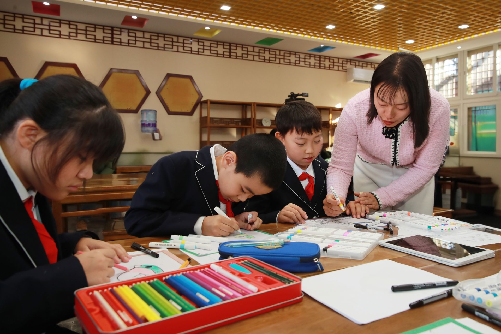 启动仪式举办前,府学胡同小学、分司厅小学、东四十四条小学,以及东城区少年宫、东城区崇文少年宫等单位共同推出了10节深度融合美育的课程。课程覆盖数学、语文、科学、艺术等多个学科。各学科教师充分挖掘学科内在的美育价值,提升学生审美素养,并为参观人员带来思考。