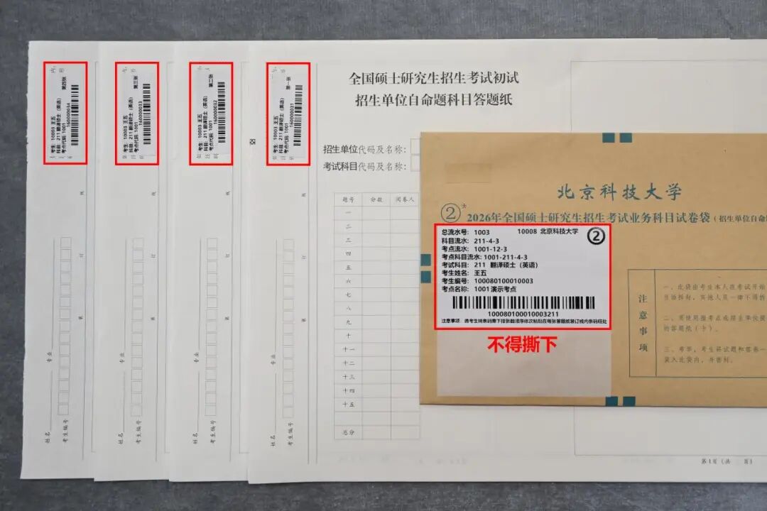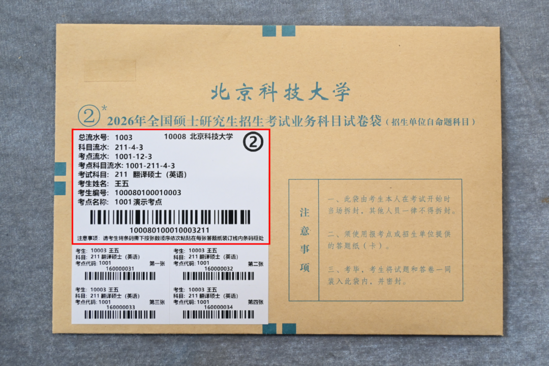 首先,请核对信封上条形码的个人信息,包括考生编号、姓名、考试科目等,如不是本人的试题,请不要拆封并及时向监考员反馈。确认无误后,方可进行拆封。