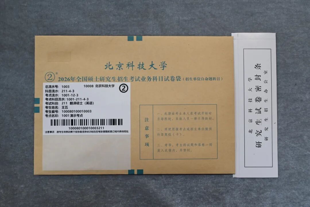 北京科技大学本年度的自命题小信封采用易拉样式,无需使用小刀。在小信封背面可以看到“拆封线”字样,考生可沿此拆封线小心拉起易拉条,打开信封、取出试卷。