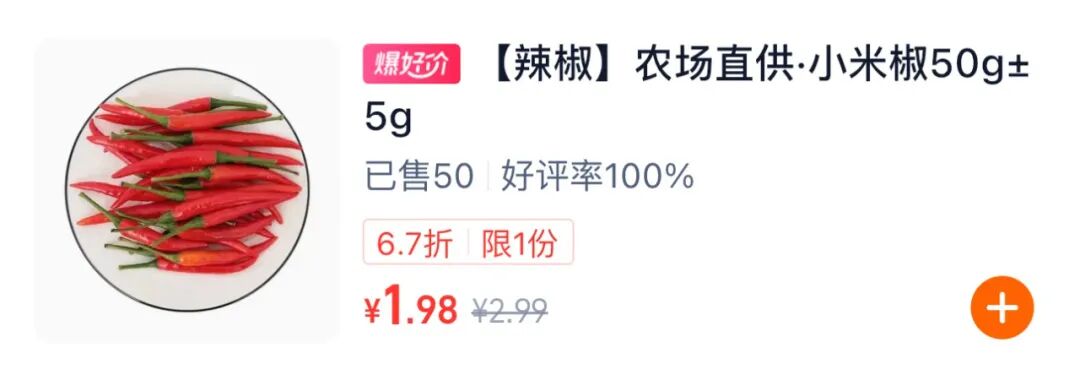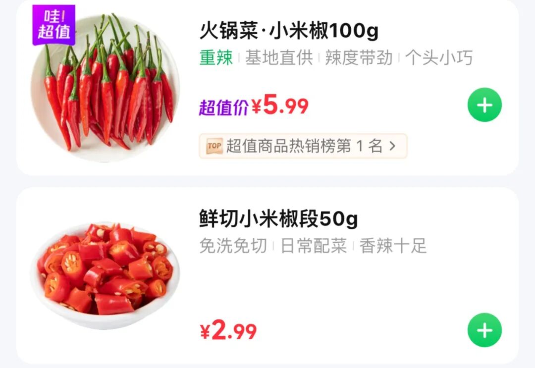 记者在厦门部分生鲜平台搜索发现,50g的小米椒售价1.98元,按一斤换算,差不多一斤也是约20元。
