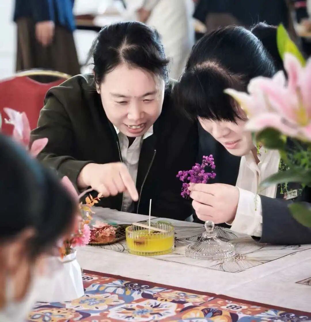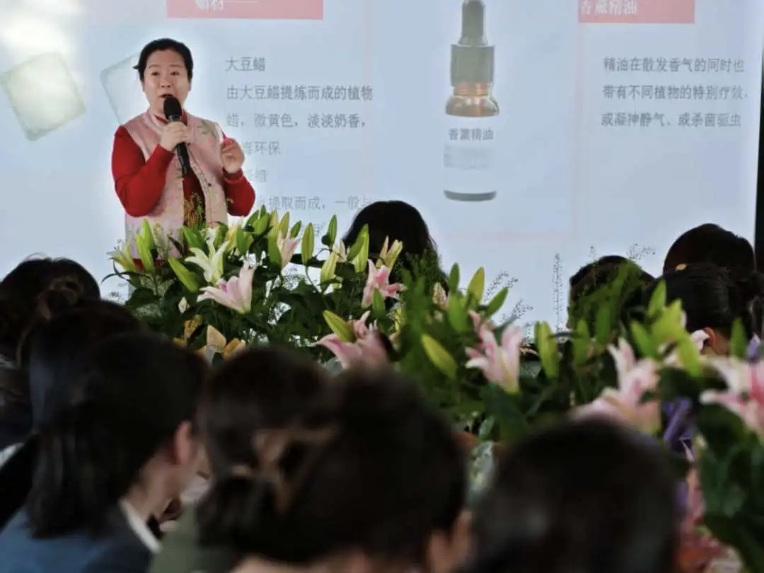 随后进入香薰DIY实操环节。在老师的悉心指导下,大家亲手调配属于自己的专属香薰产品。大家充分发挥创意,自由搭配香型与装饰,活动现场弥漫着自然芬芳,欢声笑语不断,随着一个个独具特色的香薰作品相继完成,大家脸上满是成就感与喜悦。