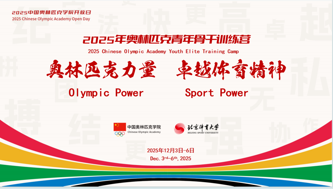 12月4日,中国奥林匹克学院2025年奥林匹克青年骨干训练营(以下简称“骨干营”)在北京体育大学正式开营。作为2025年度中国奥林匹克学院开放日系列活动的开篇序曲,本次骨干营以青春之名擎起奥林匹克精神火炬,为系列活动拉开了帷幕。