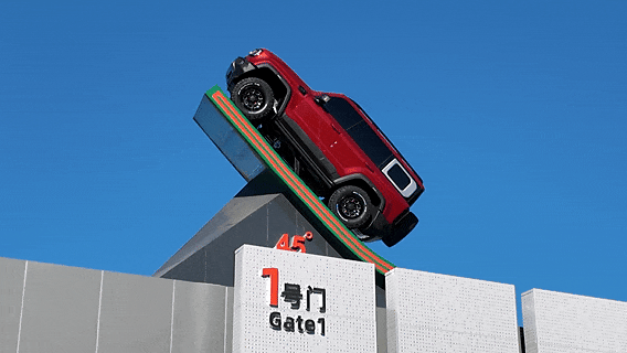 一般的越野素车爬坡极限普遍在30°坡(60%坡度),而45°坡(100%坡度)对于越野车来说,相当于一场“不可能完成的任务”。北京越野BJ40在这次实测中完成了挑战。“所以为了纪念这一结果,同时彰显北京越野BJ40的优势,我们将这个结果展示在了工厂门口。”王新年说。