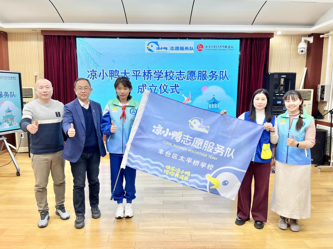 在第40个国际志愿者日来临之际,凉小鸭太平桥学校志愿服务队成立仪式隆重举行。丰台区教委双桥学区、区社会工作部、好家社会服务中心等相关单位代表与学校师生、家长齐聚一堂,共同见证这支校园志愿服务新力量的诞生。