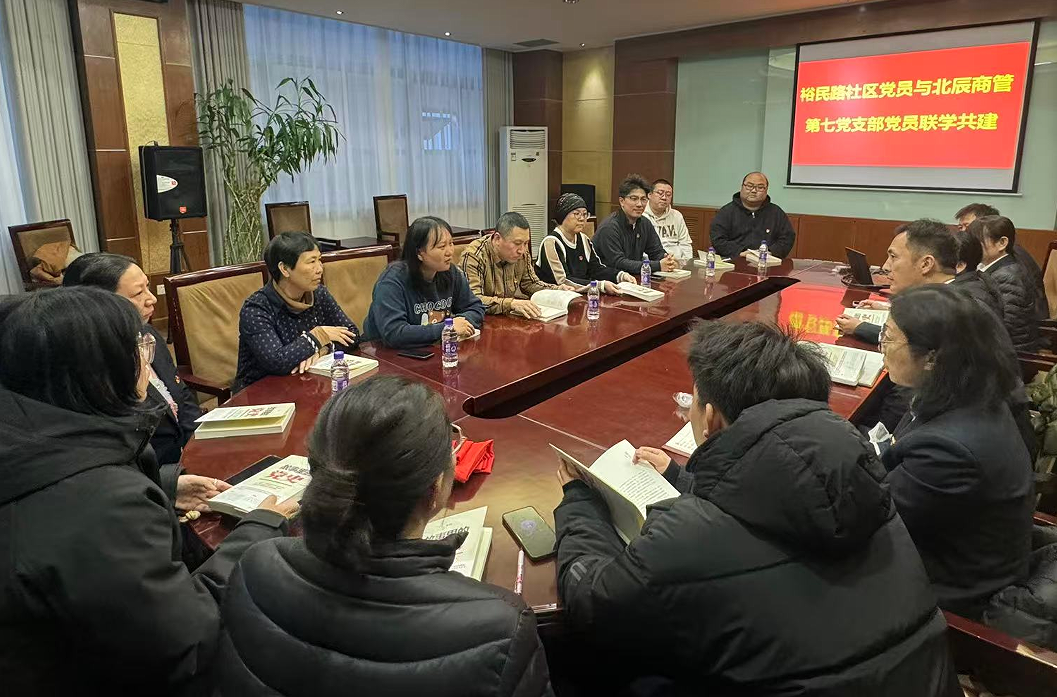 为加深企社党员间的思想交流,日前,裕民路社区党员与北辰商管第七支部携手举办了“书香润初心 联学促提升”主题读书分享会。双方围绕学习党的创新理论、经典著作结合各自岗位实践,分享了阅读心得与思考感悟。活动特别邀请了安贞街道选调生程梓宸同志参加。程梓宸同志从青年视角和基层实践体会出发,分享了在深入群众、服务一线过程中的观察与思考,为读书会带来了新鲜视角与实践启发。