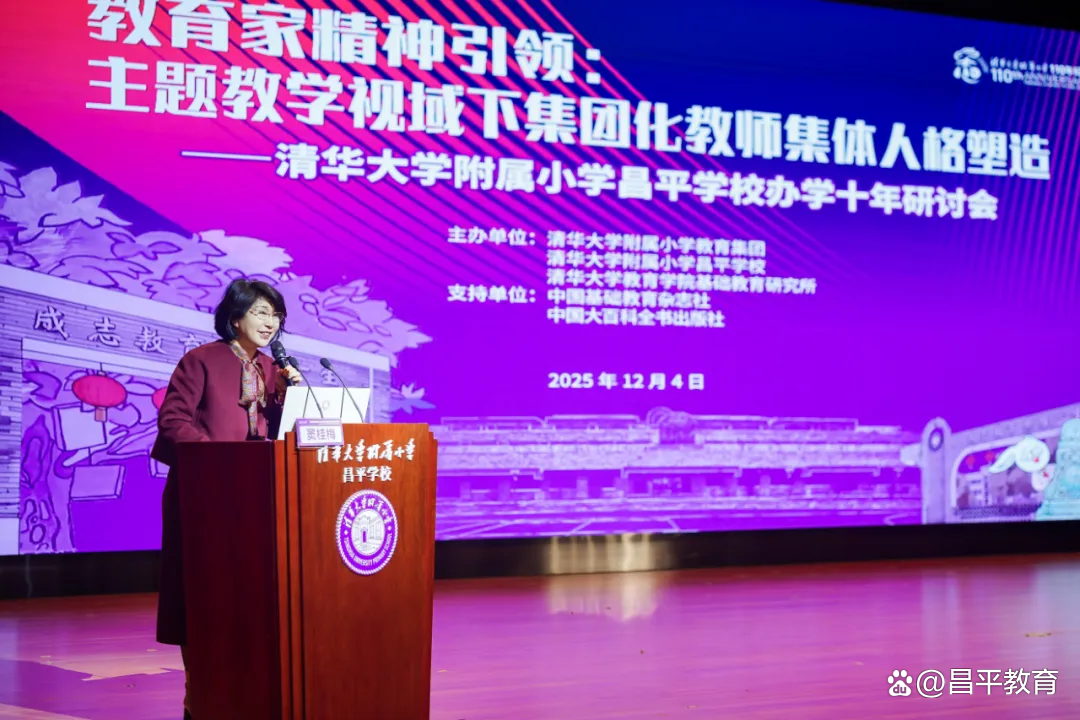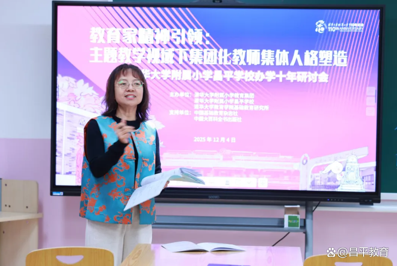 12月4日,“教育家精神引领:主题教学视域下集团化教师集体人格塑造——清华大学附属小学昌平学校办学十年研讨会”在清华大学附属小学昌平学校天通苑校区顺利召开。此次会议既是对昌平学校办学十年的系统总结,更是在回顾集团化办学不断探索的历程中,见证教育家精神引领下教师集体人格塑造的生动实践。