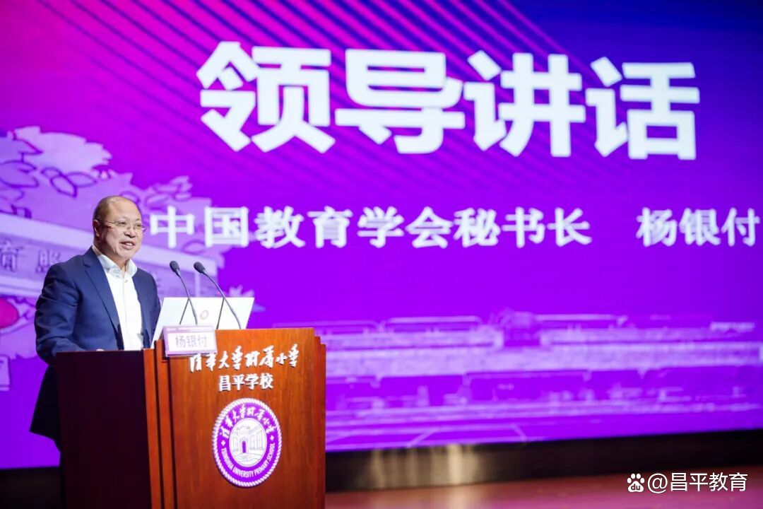中国教育学会秘书长杨银付作点评。他表示,此次研讨会是对清华附小昌平学校办学十年来师生精神面貌的综合展示,也是对清华附小教育集团语文教学改革成果的一次系统检阅,更是对新时代教育家精神如何落地生根的一次深度巡弋。他强调,建设教育强国基点在基础教育,教师是重要力量与根本依托。清华附小教师团队在窦校长的带领下,秉承“儿童站立学校正中央”的教育哲学,坚守三尺讲台,专注一间教室,扎根一所学校,奉献一生情怀,成就孩子们向梦而行、向下扎根、向上生长,未来成长为社会栋梁。希望全体教师继续弘扬教育家精神,为基础教育高质量发展注入持续动能,并以“三个致敬”“一个思考”寄语昌平教育与清华附小教育集团未来发展。