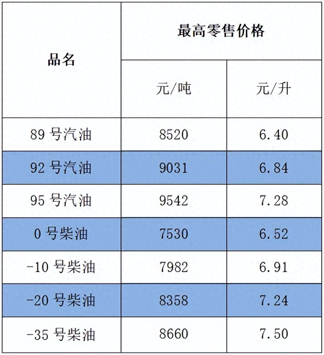 92号汽油由每升6.89元调整为6.84元,降低0.05元;