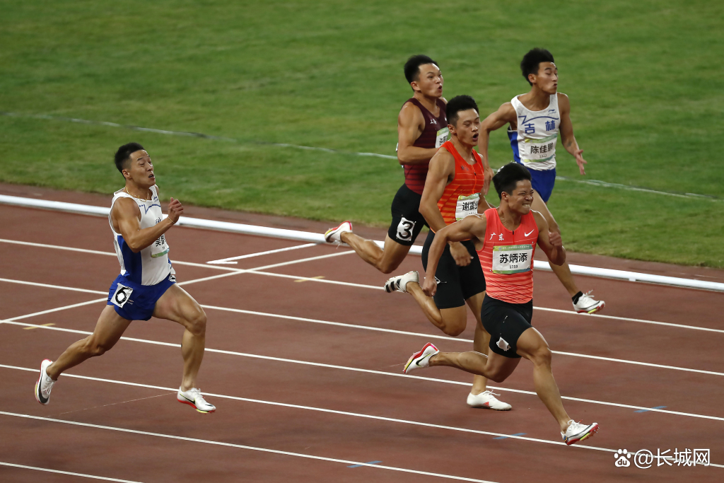 事实上,全运会金牌是苏炳添始终在追求的东西。2009年,首次参加全运会的苏炳添,以10秒52的成绩获得第六名;2013年,苏炳添以10秒12的成绩负于张培萌,获得亚军;2017年,苏炳添以10秒10的成绩负于谢震业,再次获得亚军。