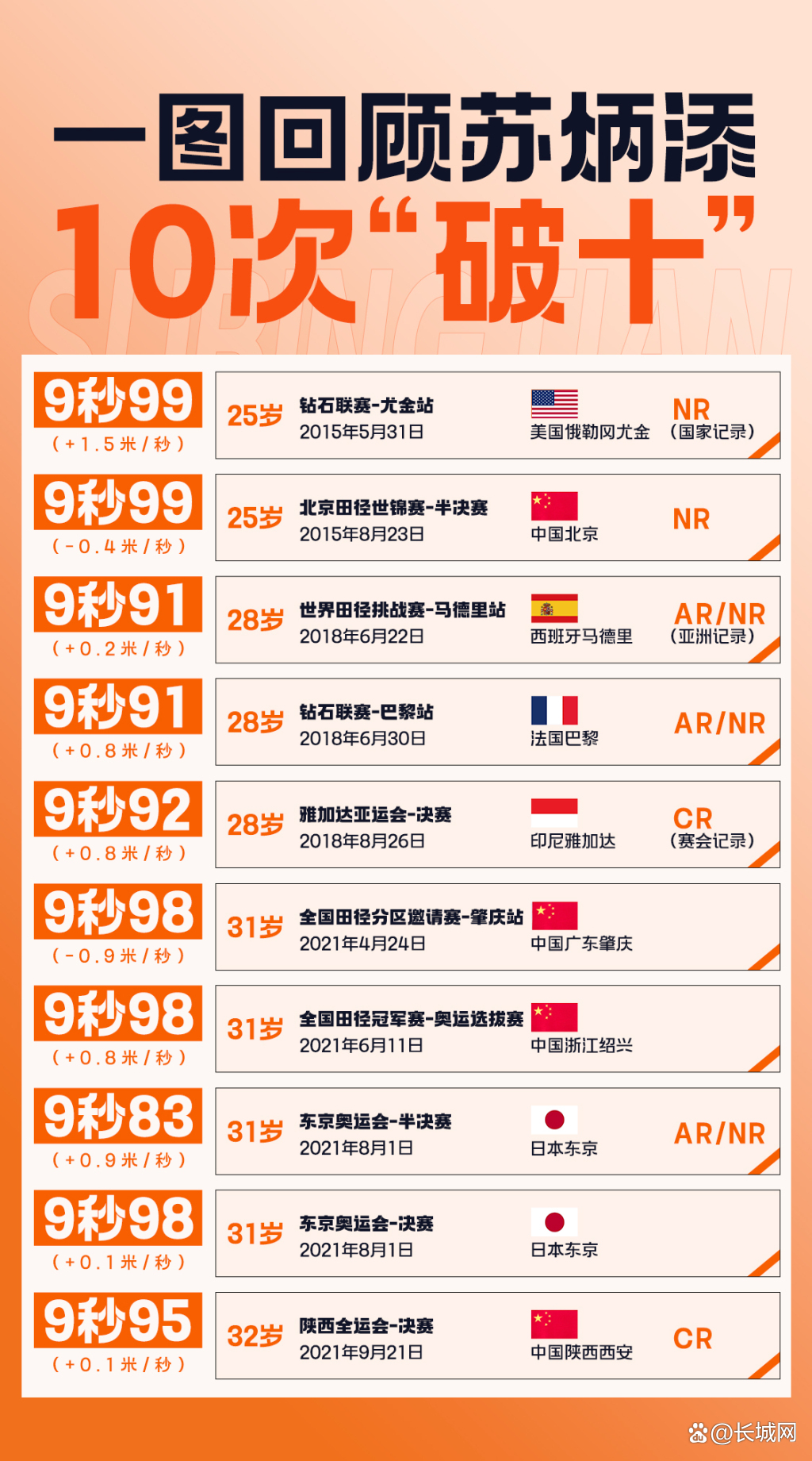 附:一图回顾苏炳添10次“破十”全纪录