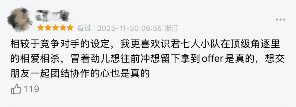 但北京也很小,小到一群追梦的人在竞争中产生羁绊。剧中7个 “识君计划”成员,从各自为战的对手,变成并肩破局的战友。在复杂棘手的案件面前,他们放下竞争、分工协作,熬夜梳理逻辑框架、奔走现场搜集信息……哪怕偶有争执,也始终朝着共同目标发力,一起合作共赢、分享成功的快乐。这份并肩作战的情谊,成了北漂路上对抗孤独的底气,也让偌大的城市多了份温暖的归属感。每一次回望来路,他们都能坦然说出那句“留在北京我不后悔”。