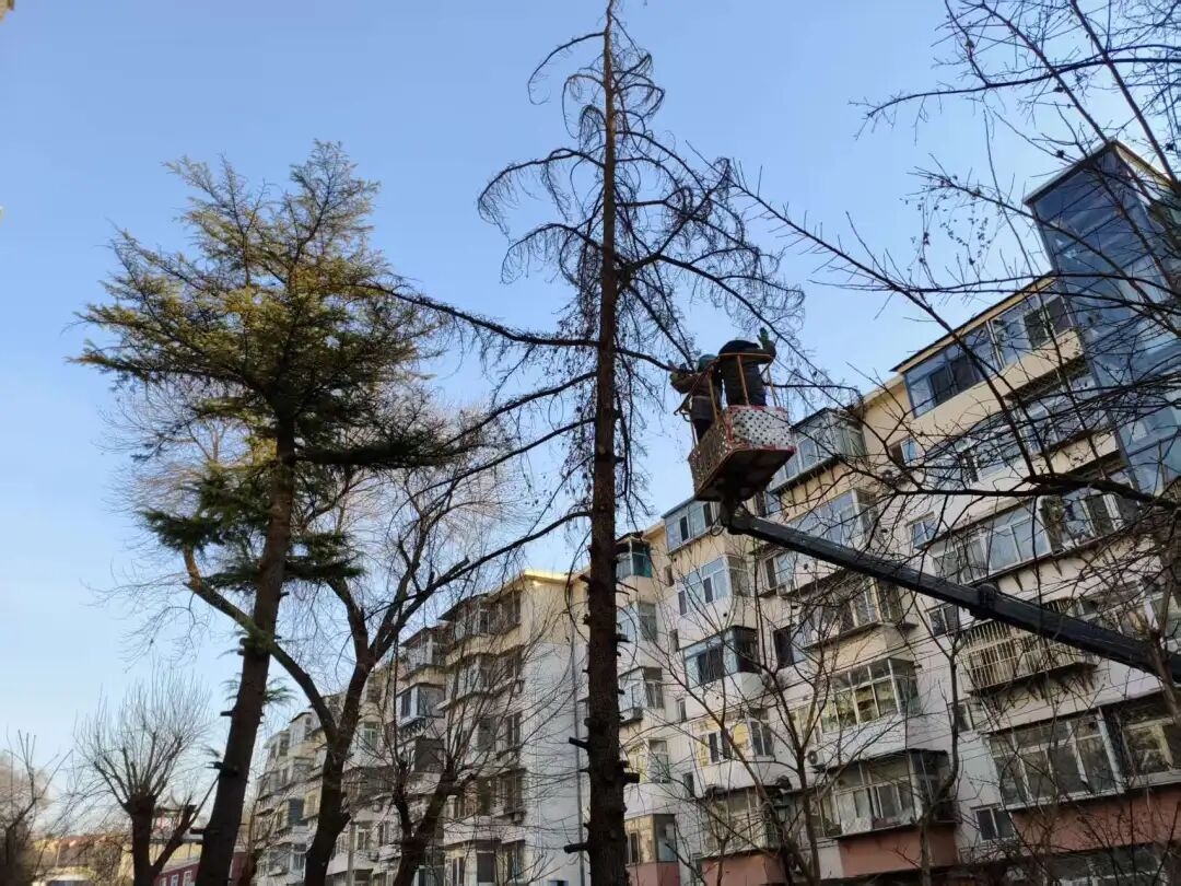物业接到通知后,迅速调配升降车、油锯等工具,安排专业砍伐工人赶赴现场。按照“先剪枝、后锯干、再清理”的流程,有条不紊地对死树进行拆解砍伐。地面工作人员则及时清理砍伐下来的树枝、树干,确保现场环境整洁有序。
