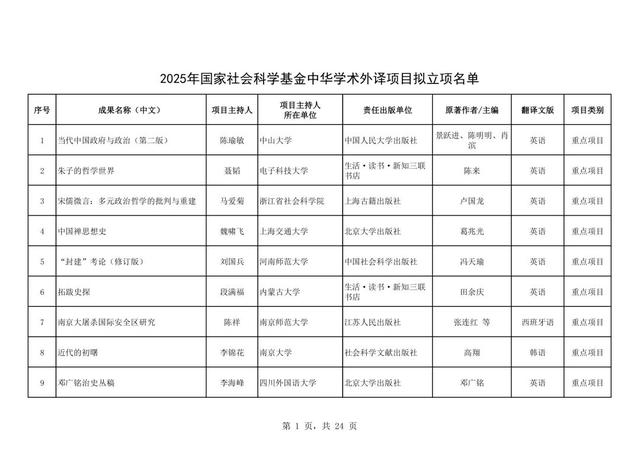 附件:2025年国家社会科学基金中华学术外译项目立项公示名单