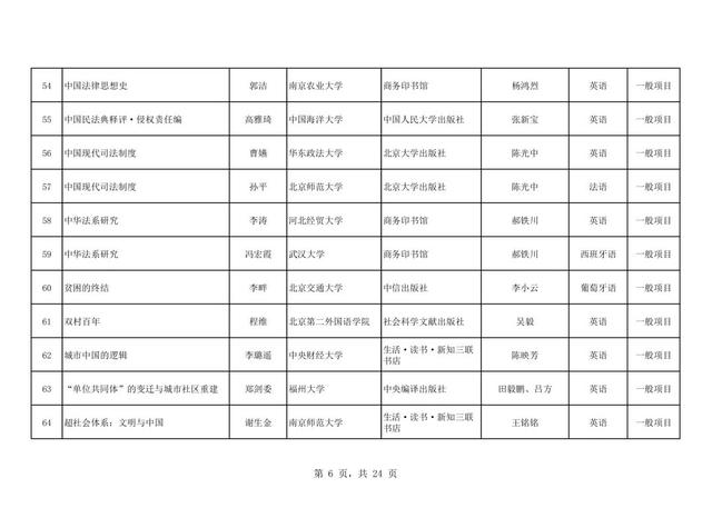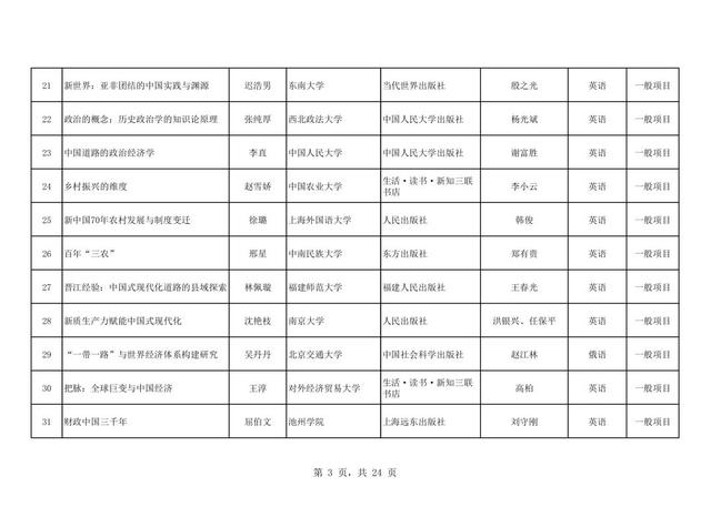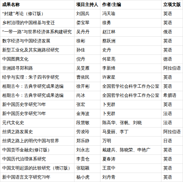 中国社会科学出版社2025年国家社科基金中华学术外译项目入选名单