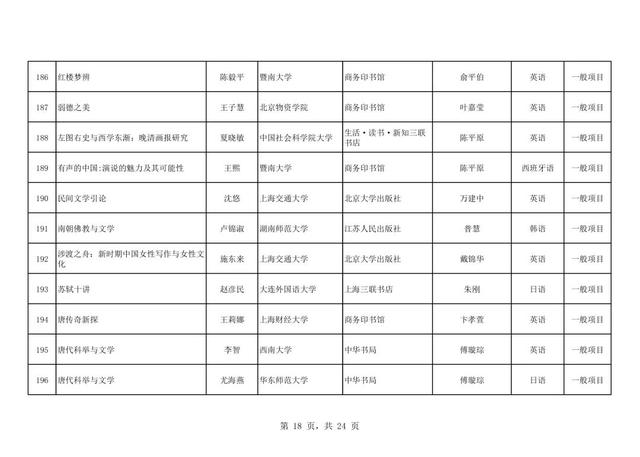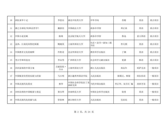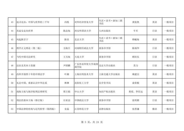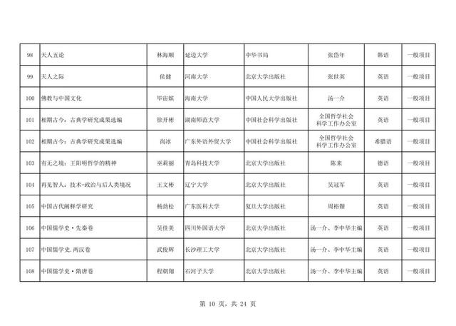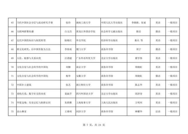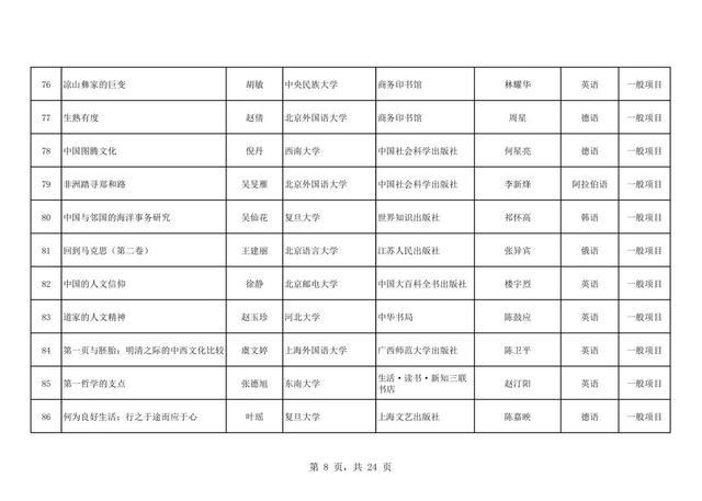 近日,全国哲学社会科学工作办公室发布了2025年《国家社科基金中华学术外译项目立项名单》,共有255个项目成功立项,中国社会科学出版社共获批19个项目,居57家出版社第三,语种覆盖7种,涉及英语、俄语、德语、日语、法语、阿拉伯语、希腊语,具体立项名单如下: