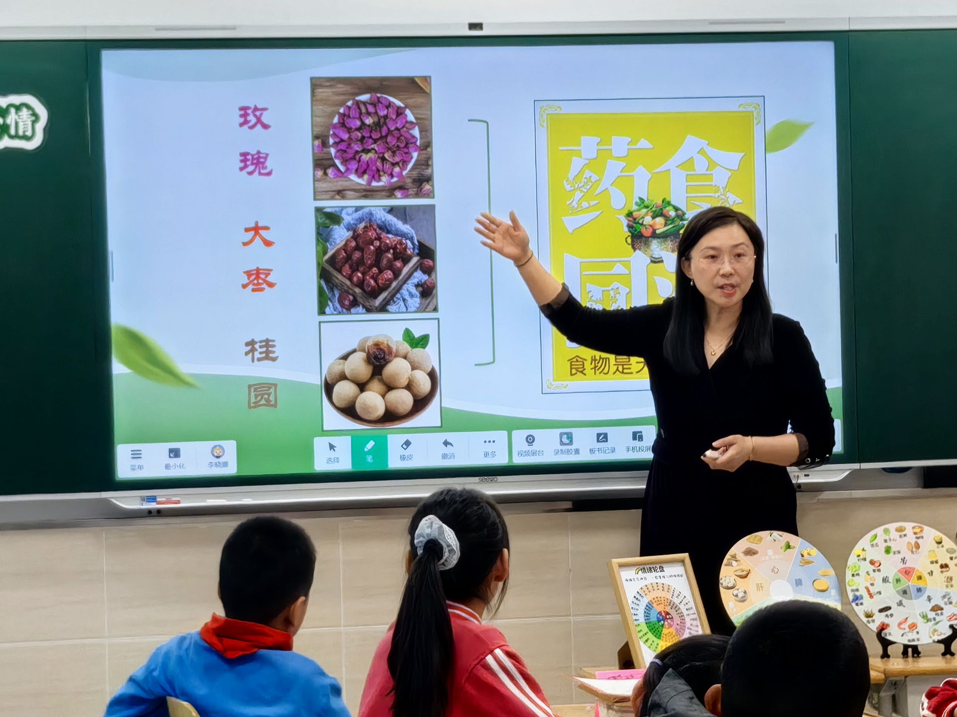 活动现场展示了北京市东城区史家小学分校与北京市密云区东邵渠镇中心小学以中医药文化为抓手,结对构建心育新模式的实践成果。密云区东邵渠小学教师李晓娜在综合实践课上,以“茶饮”为主题带领学生了解不同草药的功效,并配置中草药茶饮。两校师生还展示合作创编的“童心治‘郁’记”放松舒缓操,以民乐演奏为主的“五音疗法”。此外,两所学校还展示了德育“润”心、科学育“心”、以体促“心”等涵盖语文、数学、道德与法治、综合实践等多个学科的13节示范课,以传统文化、中医药文化为纽带,诠释“全员心育、全科心育”的理念。