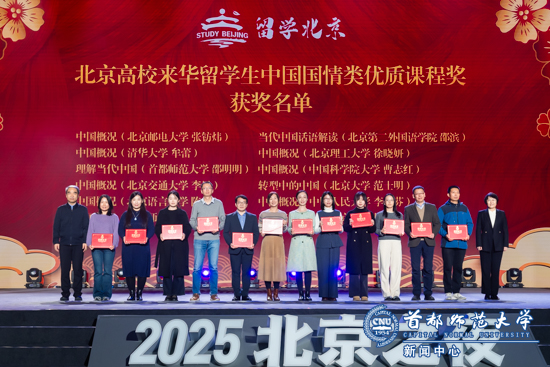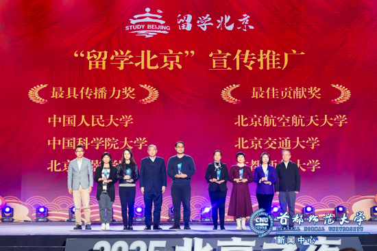 本次活动既是首都高校中外青年学子文明互鉴、文化交流的重要平台,也是2025年“留学北京”工作的成果回顾。活动现场还为“留学北京”宣传推广最具传播力奖、最佳贡献奖以及北京来华留学生政府奖学金获得者代表、北京高校来华留学生中国国情类优质课程获奖者颁奖。我校获得“留学北京”宣传推广最佳贡献奖;语言学及应用语言学专业硕士研究生王明珠(ARTEMENKO IULIIA)作为北京来华留学生政府奖学金获得者代表上台领奖;我校国际文化学院教师邵明明的《理解当代中国》获北京高校来华留学生中国国情类优质课程奖。