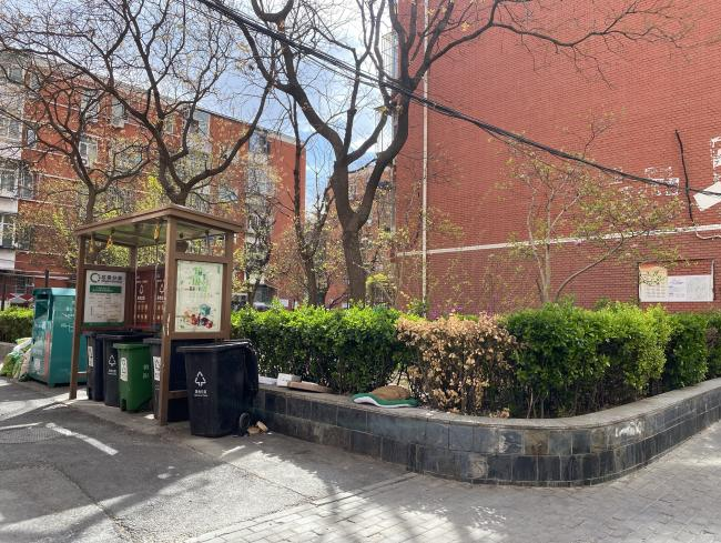 机电南院小区紧邻太古里、三里屯SOHO,属于“商居交汇”典型区域,共4栋楼351户,常住人口877人。过去3组散置桶站常出现垃圾满冒、桶身脏污等情况,与商圈整体形象不协调。街道与社区协商,将3组桶站合并为1组,桶站同步搭载摄像头,既可以人工实时监控,也支持视频回放追溯,能及时发现并劝阻周边商户偷倒垃圾行为,高效解决问题,有效推动居民自觉分类习惯养成。