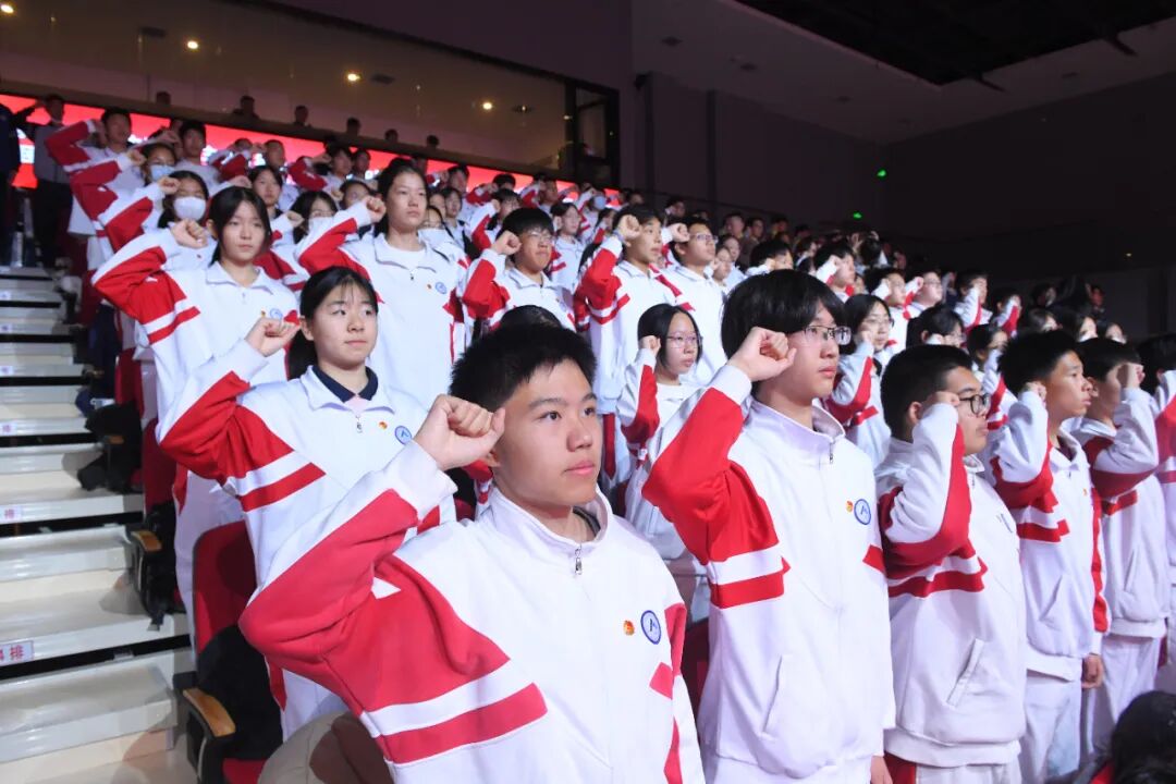 “我志愿加入中国共产主义青年团,坚决拥护中国共产党的领导……”在领誓人的带领下,新团员们面向团旗庄严宣誓,铿锵有力的誓言回荡在演播大厅,既是对共青团组织的郑重承诺,更是对未来人生的坚定宣告。随后,新团员代表分享了入团感悟与奋斗目标,字里行间洋溢着青春朝气与跟党前行的坚定信念;优秀团员代表则结合自身在志愿服务、学科竞赛等方面的实践经历,传递了践行团员使命、助力区域发展的经验体会,展现了共青团精神的薪火相传。