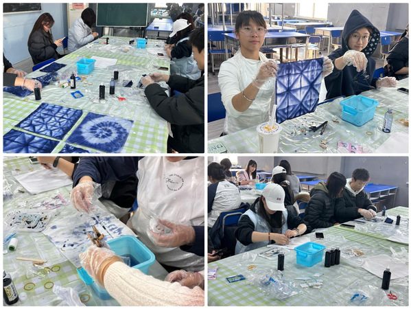 本届艺术节深耕中华优秀传统文化,通过多元非遗活动搭建传承桥梁。教育学院“翰墨迎春,福联传情”书法楹联临摹大赛中,学子以多样书体临摹经典或原创楹联,尽显笔墨功底;“墨韵流光,笔走龙蛇”书法体验活动中,专业教师详解《兰亭序》等经典技法,引导学生在横竖撇捺间体悟书法魅力;医护学院开展“笔墨传情,书写未来”活动,围绕诗词经典与吉祥寓意主题进行创作,传递传统文化温度;艺术学院举办“感受扎染魅力,共赴艺术之约”活动,学子沉浸式学习捆扎、染色技法,蓝白交织的作品兼具传统韵味与青春创意;此外,剪纸、团扇技艺比赛及“非遗新语”展演等活动,进一步拓宽了传统文化传播路径,让非遗魅力浸润校园。