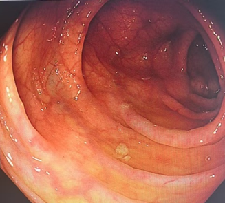辅助检查:(2024年3月25日本院)肠镜下可见:距肛门约37-40cm降结肠局部黏膜可见散在片状红斑充血糜烂,直肠黏膜稍充血水肿,粗糙颗粒感,局部黏膜可见散在糜烂。